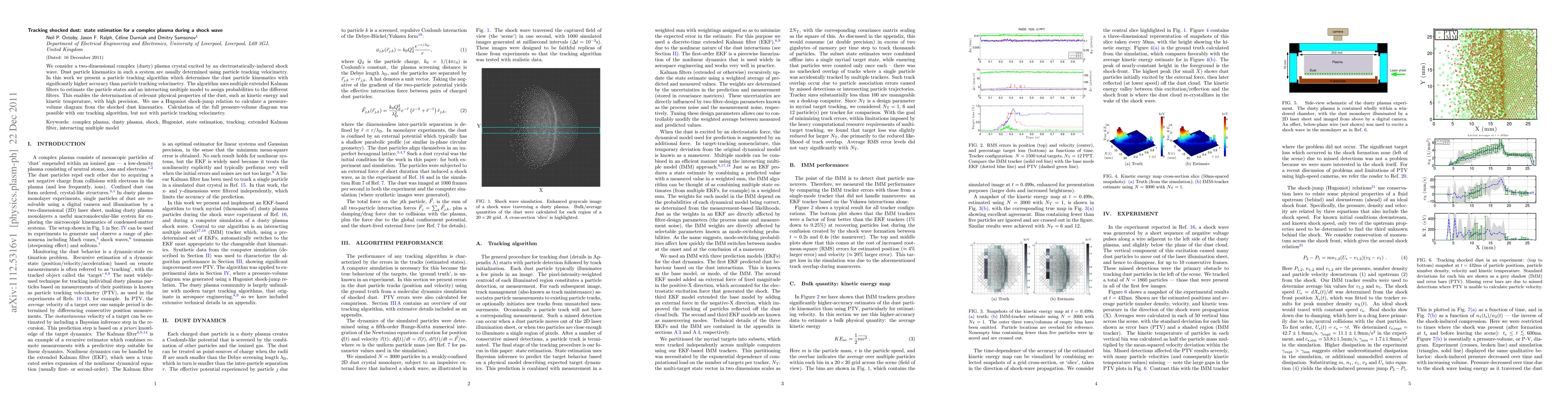 This paper presents a novel particle tracking algorithm utilizing extended Kalman filters and an interacting multiple model to accurately determine the kinematics of dust particles in a complex plasma crystal subjected to an electrostatic shock wave. The method enables precise calculation of kinetic energy and temperature, and a full pressure-volume diagram, surpassing the accuracy of traditional particle tracking velocimetry.