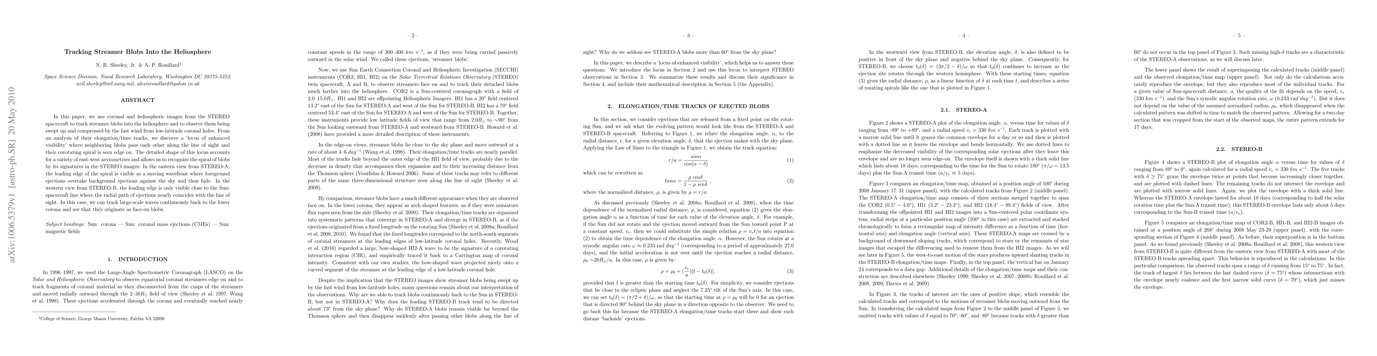 Researchers tracked streamer blobs into the heliosphere using STEREO spacecraft images, revealing a unique 'locus of enhanced visibility' where neighboring blobs pass each other along their spiral path.