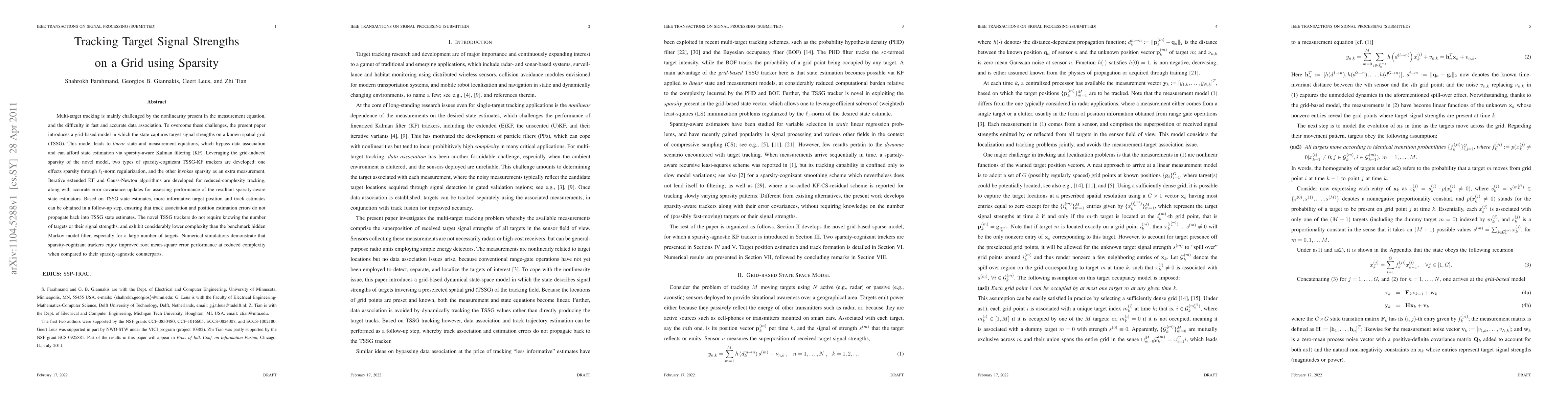 This paper proposes a new tracking method that uses a grid-based model to track target signal strengths, allowing for fast and accurate data association without requiring knowledge of the number of targets or their signal strengths. The method achieves improved performance at reduced complexity compared to existing methods.