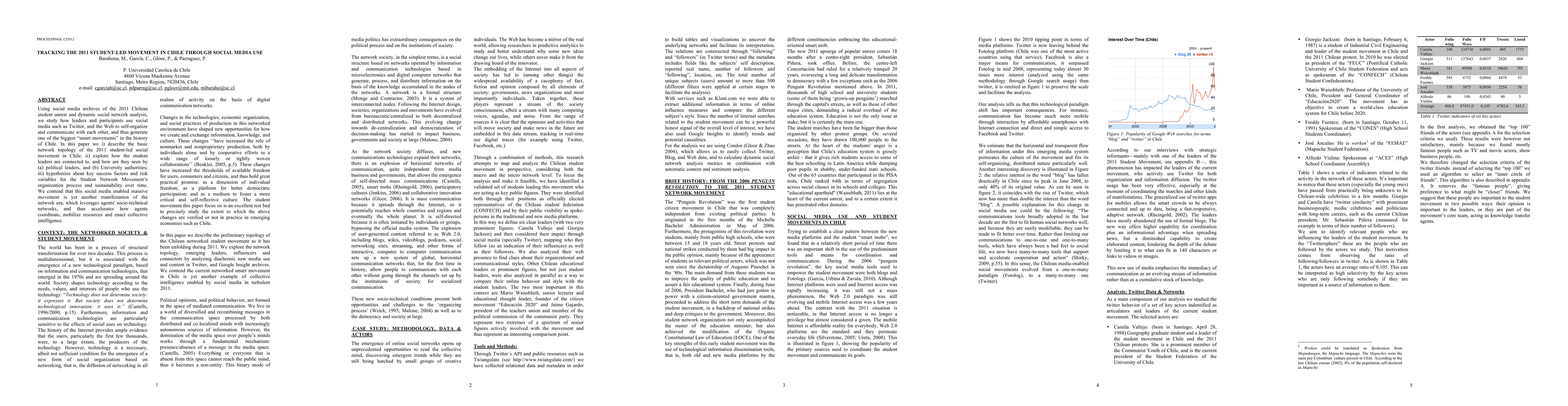 This paper examines the 2011 Chilean student-led collective movement using social media archives and dynamic social network analysis, focusing on the network topology and the connections between student leaders and political/university authorities. It hypothesizes on key success factors and risks for the movement's organization and sustainability.