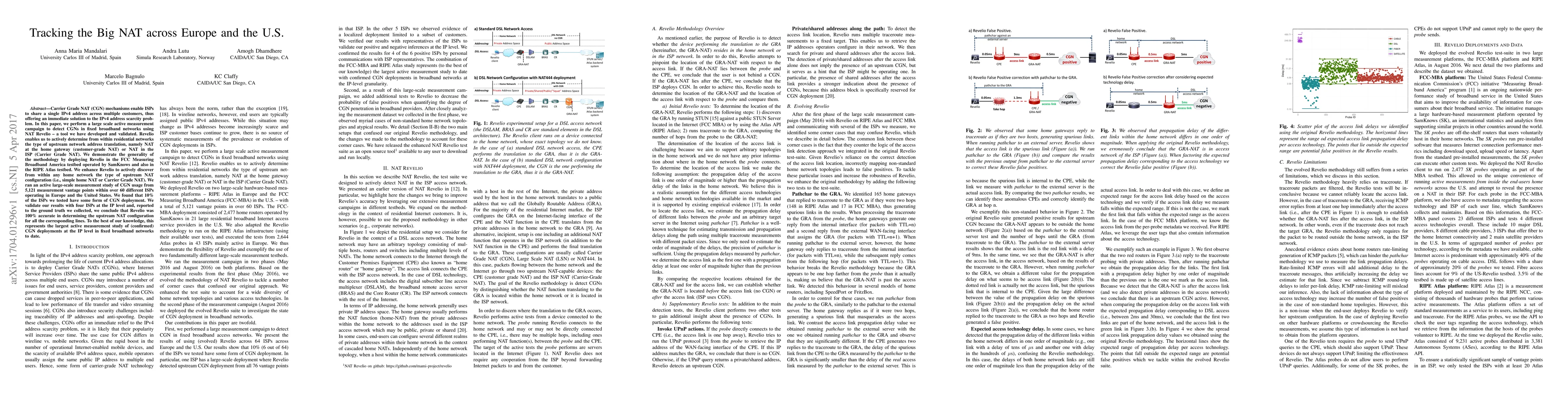 A study tracked 10% of ISPs using Carrier Grade NAT (CGN) in Europe and the US, validating the accuracy of a measurement tool to detect CGNs at the IP level.