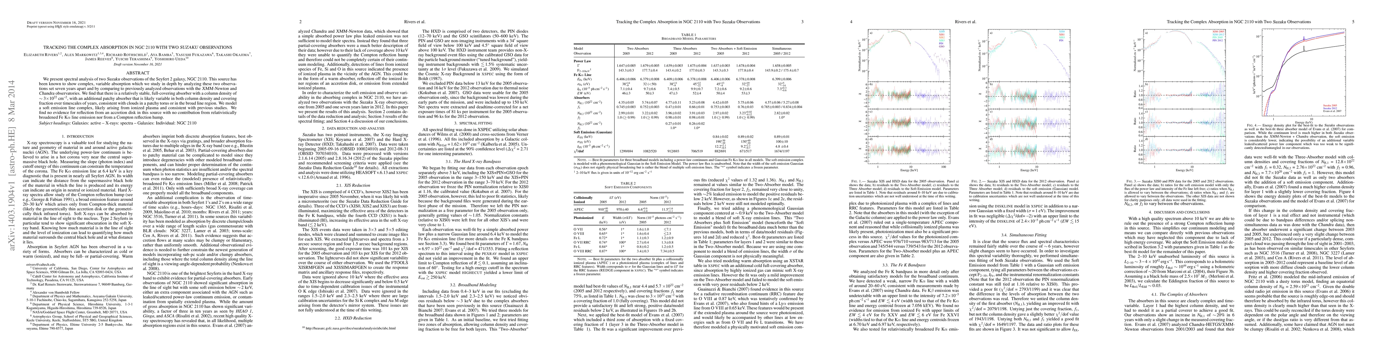 We present spectral analysis of two Suzaku observations of the Seyfert 2 galaxy, NGC 2110. This source has been known to show complex, variable absorption which we study in depth by analyzing these two observations set seven years apart and by comparing to previously analyzed observations with the XMM-Newton and Chandra observatories. We find that there is a relatively stable, full-covering absorber with a column density of ~3$\times 10 ^{22}$ cm$^{-2}$, with an additional patchy absorber that is likely variable in both column density and covering fraction over timescales of years, consistent with clouds in a patchy torus or in the broad line region. We model a soft emission line complex, likely arising from ionized plasma and consistent with previous studies. We find no evidence for reflection from an accretion disk in this source with no contribution from relativistically broadened Fe Ka line emission nor from a Compton reflection hump.