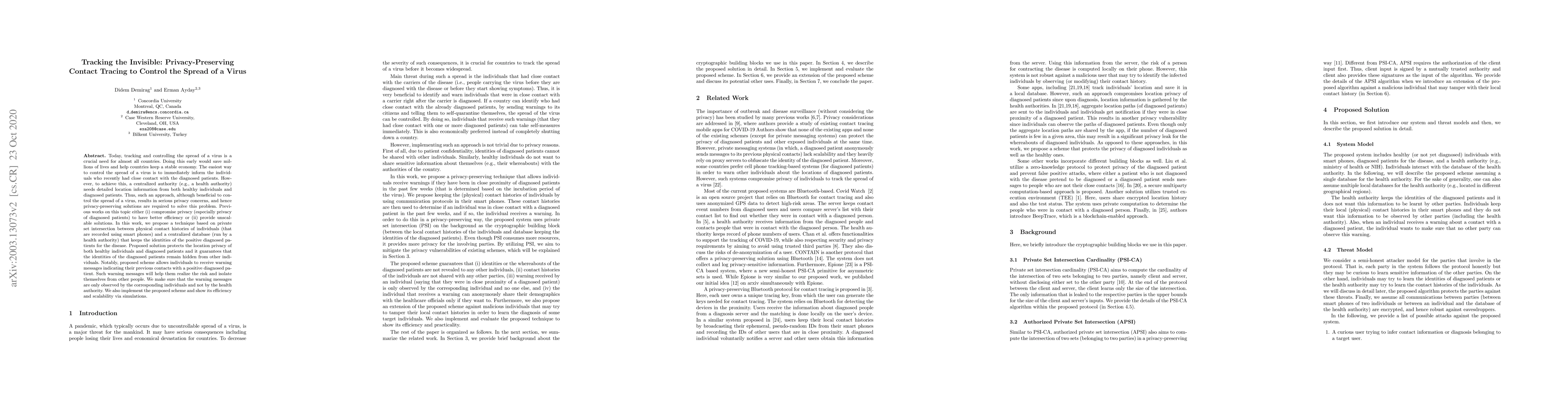 Researchers propose a privacy-preserving contact tracing technique that uses private set intersection to protect individuals' location privacy while still sending personalized warning messages to those at risk of infection.