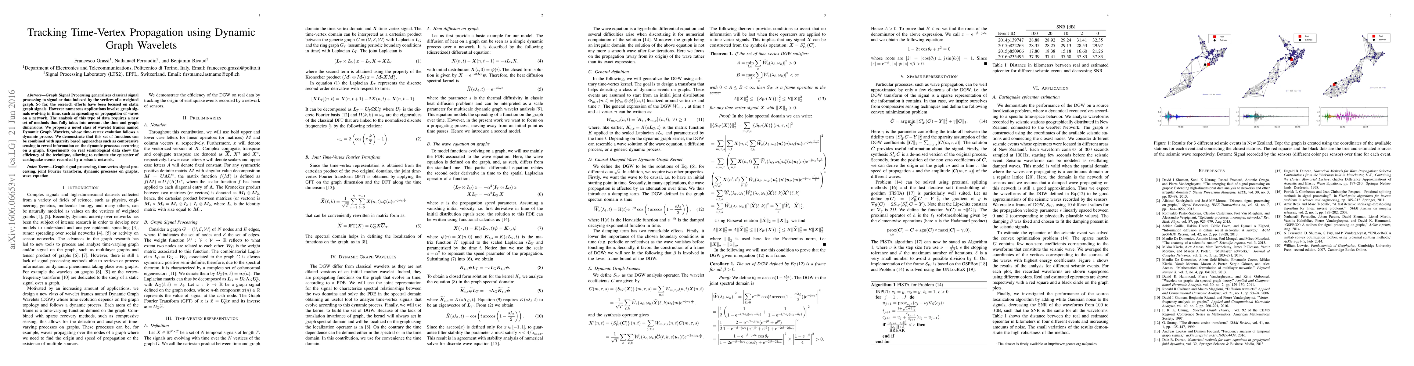 The main novelty of this work lies in the development of DGW, which extend classical wavelets to the time-vertex domain, enabling the analysis of dynamic processes on graphs, and their successful application to earthquake epicenter estimation.