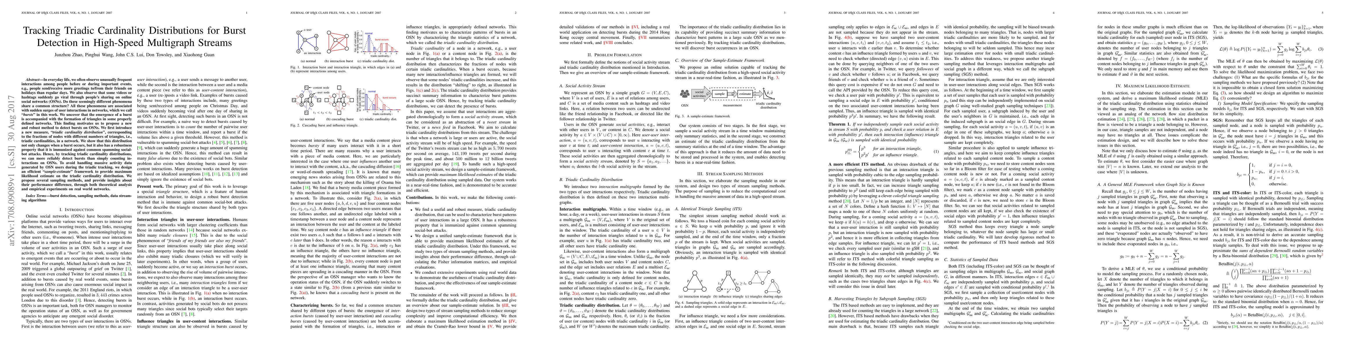 In everyday life, we often observe unusually frequent interactions among people before or during important events, e.g., people send/receive more greetings to/from their friends on holidays than regular days. We also observe that some videos or hashtags suddenly go viral through people's sharing on online social networks (OSNs). Do these seemingly different phenomena share a common structure? All these phenomena are associated with sudden surges of user interactions in networks, which we call "bursts" in this work. We uncover that the emergence of a burst is accompanied with the formation of triangles in some properly defined networks. This finding motivates us to propose a new and robust method to detect bursts on OSNs. We first introduce a new measure, "triadic cardinality distribution", corresponding to the fractions of nodes with different numbers of triangles, i.e., triadic cardinalities, in a network. We show that this distribution not only changes when a burst occurs, but it also has a robustness property that it is immunized against common spamming social-bot attacks. Hence, by tracking triadic cardinality distributions, we can more reliably detect bursts than simply counting interactions on OSNs. To avoid handling massive activity data generated by OSN users during the triadic tracking, we design an efficient "sample-estimate" framework to provide maximum likelihood estimate on the triadic cardinality distribution. We propose several sampling methods, and provide insights about their performance difference, through both theoretical analysis and empirical experiments on real world networks.