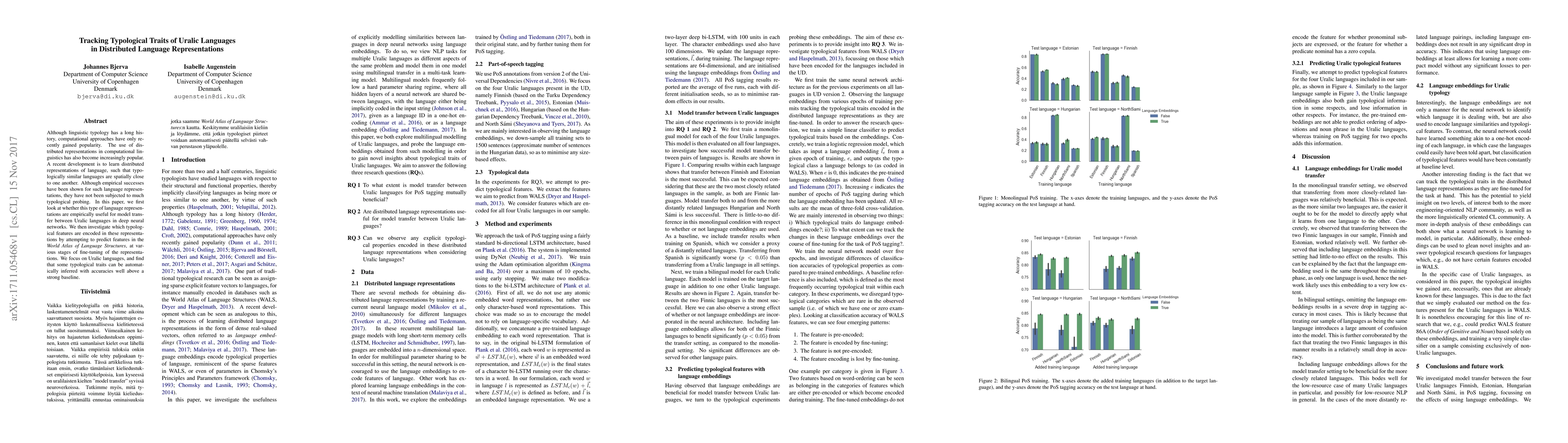 This paper examines the effectiveness of distributed language representations for transferring knowledge between Uralic languages using deep neural networks and investigates which typological features these representations encode. The study finds that certain typological traits can be inferred with high accuracy, suggesting the potential of these representations for typological analysis.