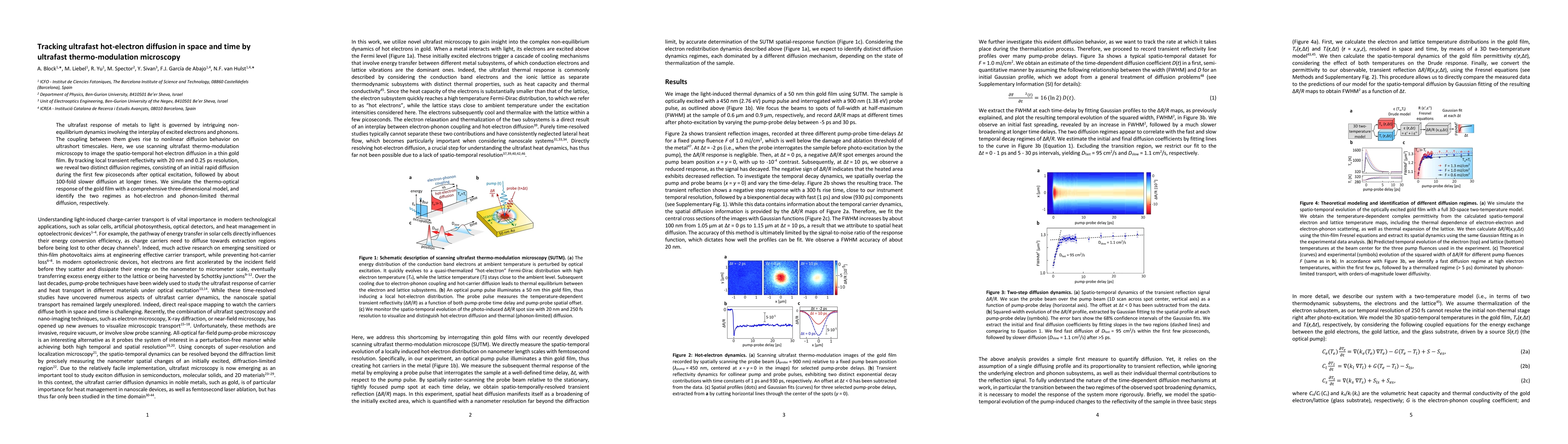 This paper employs scanning ultrafast thermo-modulation microscopy to track ultrafast hot-electron diffusion in gold, revealing two distinct diffusion regimes: rapid initial diffusion followed by a much slower regime. The study identifies the regimes as hot-electron and phonon-limited thermal diffusion through comprehensive three-dimensional simulations.