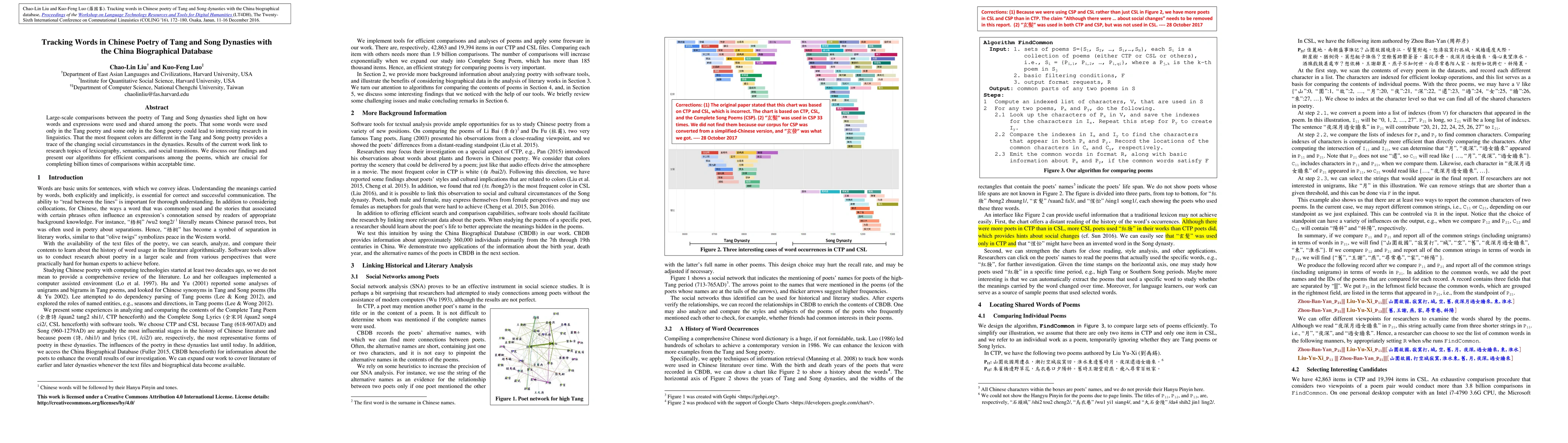 This paper uses the China Biographical Database to analyze word usage in Tang and Song dynasty Chinese poetry, revealing differences in collocations and expressions between the two periods. The study highlights linguistic and social transitions, employing efficient algorithms for large-scale comparisons.