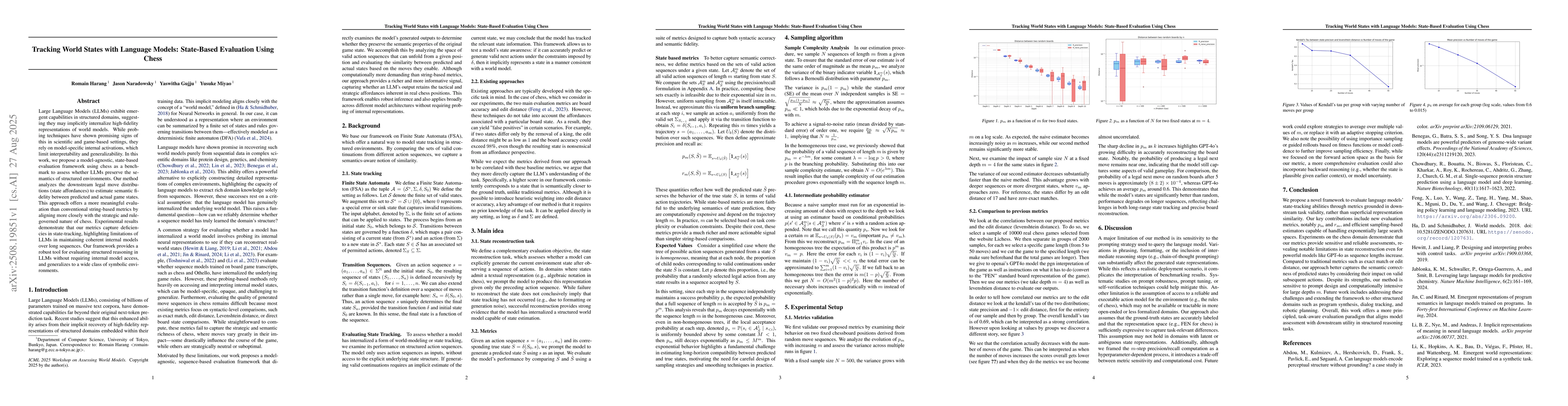 Large Language Models (LLMs) exhibit emergent capabilities in structured domains, suggesting they may implicitly internalize high-fidelity representations of world models. While probing techniques have shown promising signs of this in scientific and game-based settings, they rely on model-specific internal activations, which limit interpretability and generalizability. In this work, we propose a model-agnostic, state-based evaluation framework using chess as a benchmark to assess whether LLMs preserve the semantics of structured environments. Our method analyzes the downstream legal move distributions (state affordances) to estimate semantic fidelity between predicted and actual game states. This approach offers a more meaningful evaluation than conventional string-based metrics by aligning more closely with the strategic and rule-governed nature of chess. Experimental results demonstrate that our metrics capture deficiencies in state-tracking, highlighting limitations of LLMs in maintaining coherent internal models over long sequences. Our framework provides a robust tool for evaluating structured reasoning in LLMs without requiring internal model access, and generalizes to a wide class of symbolic environments.