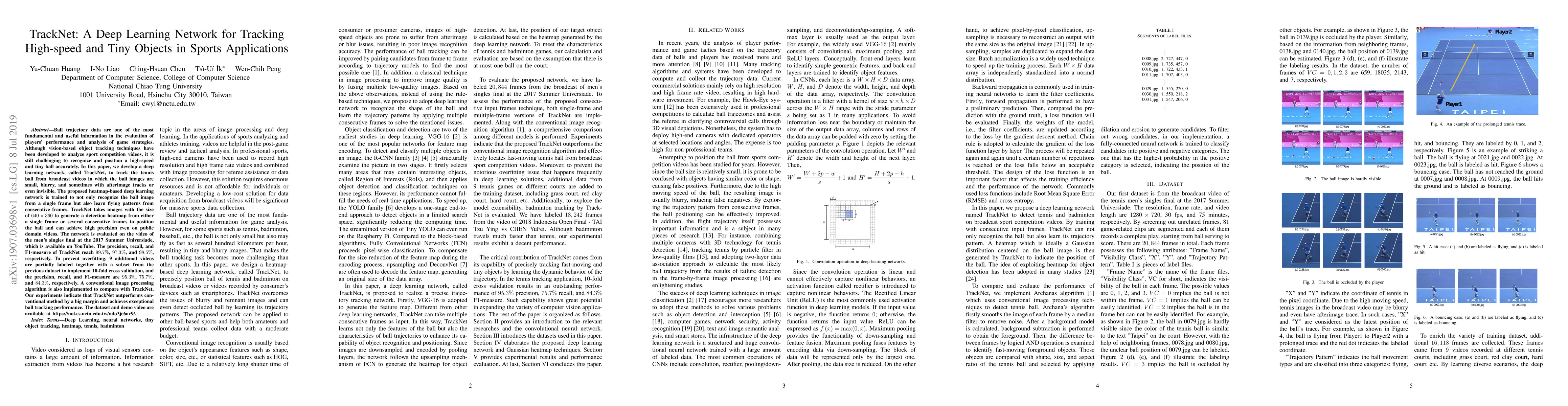 TrackNet is a deep learning network designed to accurately track high-speed and tiny tennis balls in sports videos, achieving high precision, recall, and F1-measure. It outperforms conventional image processing methods and is evaluated using 10-fold cross-validation on a diverse set of videos.