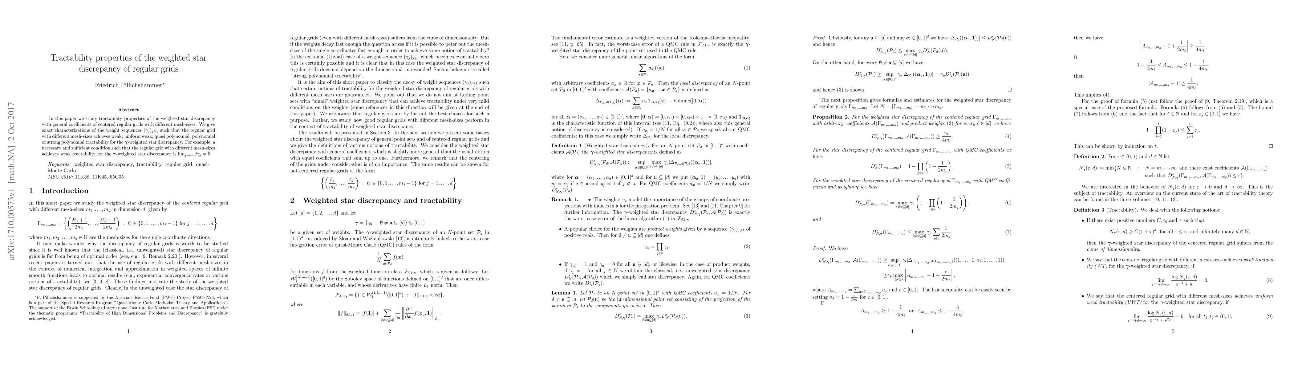 In this paper we study tractability properties of the weighted star discrepancy with general coefficients of centered regular grids with different mesh-sizes. We give exact characterizations of the weight sequences $(\gamma_j)_{j \ge 1}$ such that the regular grid with different mesh-sizes achieves weak, uniform weak, quasi polynomial, polynomial or strong polynomial tractability for the $\boldsymbol{\gamma}$-weighted star discrepancy. For example, a necessary and sufficient condition such that the regular grid with different mesh-sizes achieves weak tractability for the $\boldsymbol{\gamma}$-weighted star discrepancy is $\lim_{j \rightarrow \infty}j \gamma_j=0$.