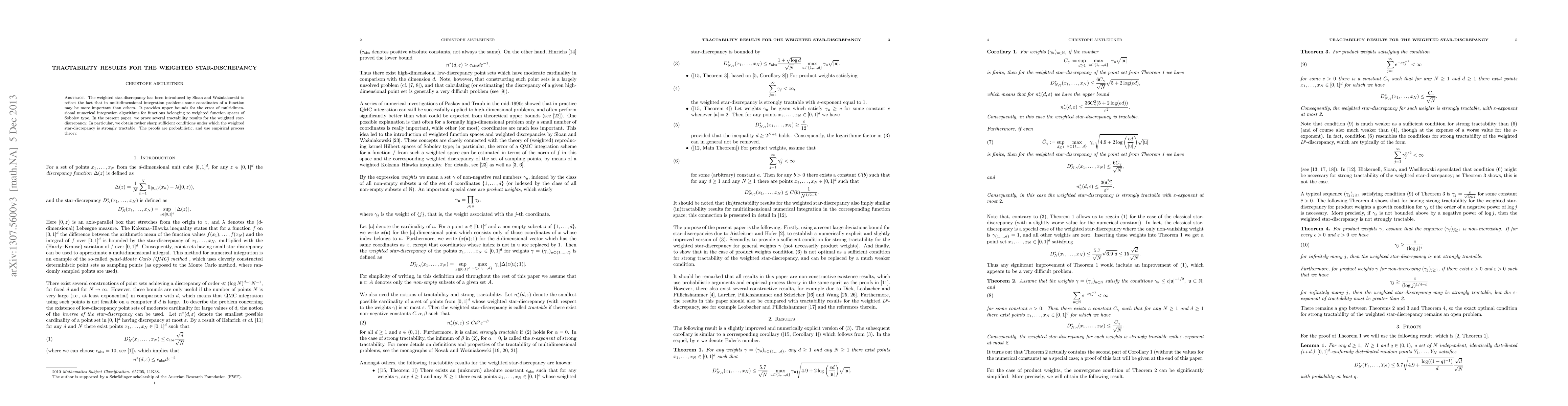 This paper proves several tractability results for the weighted star-discrepancy, which measures the error in multidimensional numerical integration where certain coordinates may have more importance. It provides sharp conditions for strong tractability, employing probabilistic methods and empirical process theory.