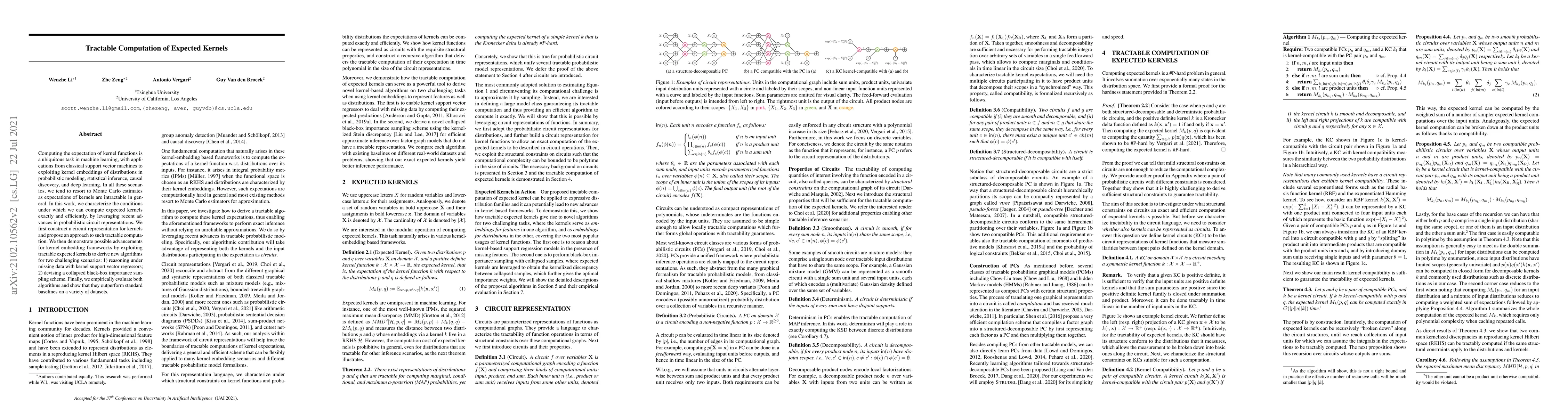 Researchers developed a method to compute expected kernel functions exactly and efficiently using probabilistic circuit representations, leading to improved performance in machine learning scenarios involving missing data and importance sampling.