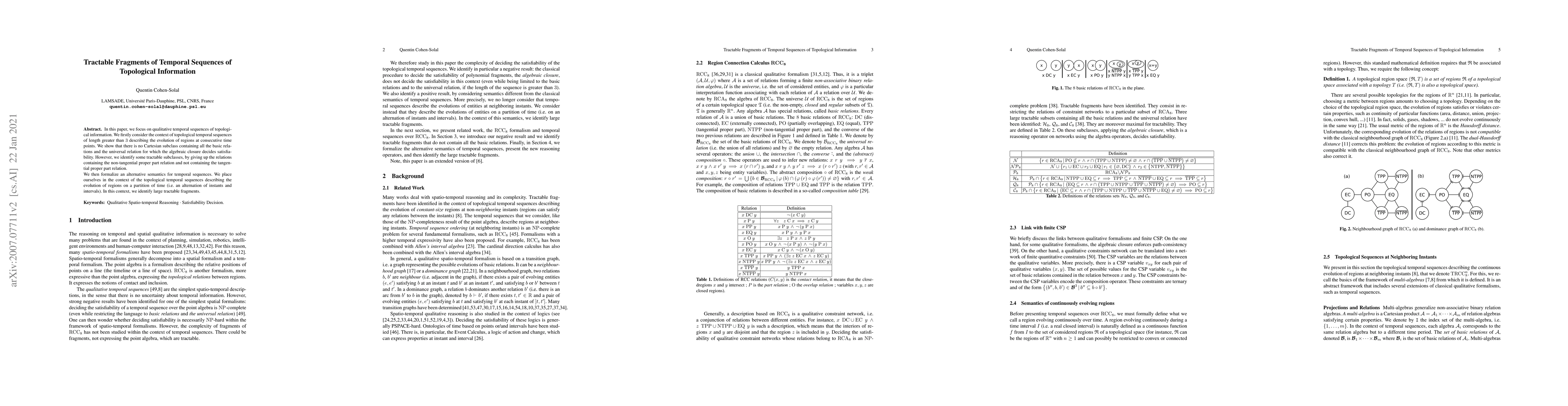 This paper investigates qualitative temporal sequences of topological information, identifying tractable subclasses by excluding non-tangential proper part relations. It formalizes an alternative semantics for temporal sequences describing region evolution over time, revealing significant tractable fragments in this context.