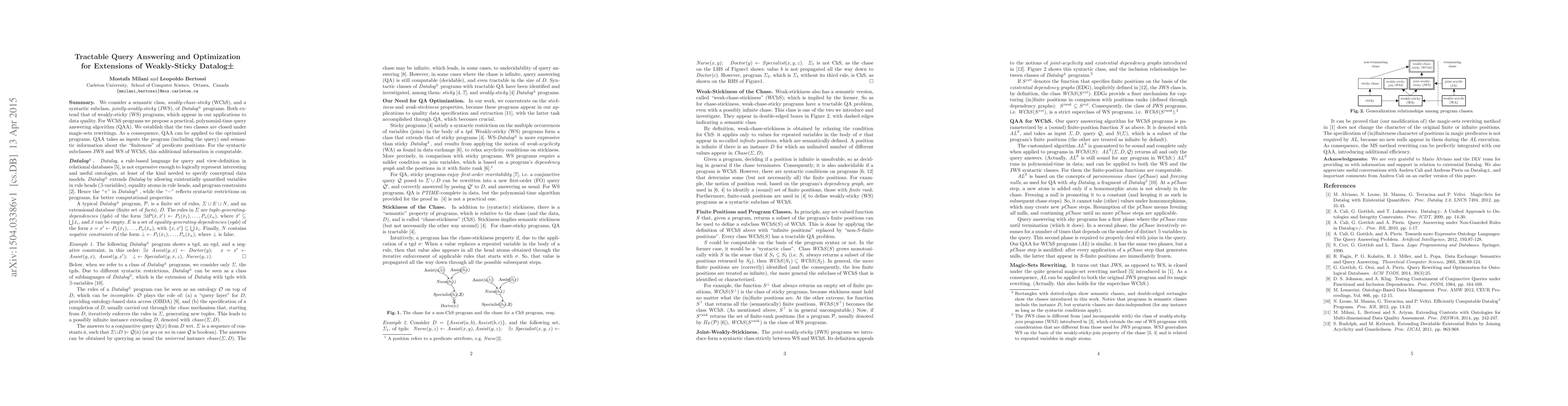 We consider a semantic class, weakly-chase-sticky (WChS), and a syntactic subclass, jointly-weakly-sticky (JWS), of Datalog+- programs. Both extend that of weakly-sticky (WS) programs, which appear in our applications to data quality. For WChS programs we propose a practical, polynomial-time query answering algorithm (QAA). We establish that the two classes are closed under magic-sets rewritings. As a consequence, QAA can be applied to the optimized programs. QAA takes as inputs the program (including the query) and semantic information about the "finiteness" of predicate positions. For the syntactic subclasses JWS and WS of WChS, this additional information is computable.