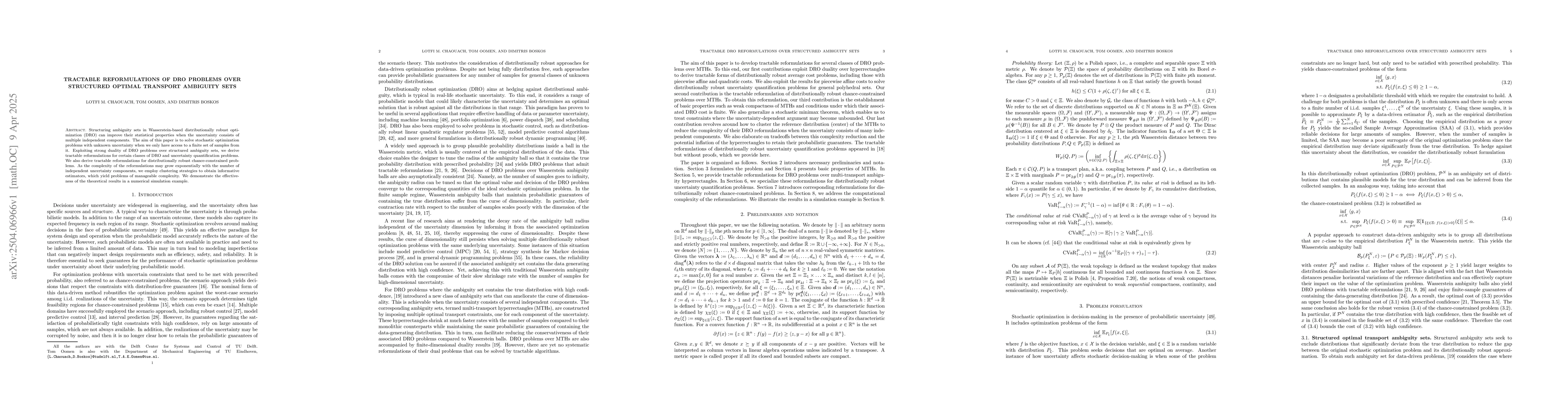 The paper presents novel tractable reformulations for DRO problems over structured ambiguity sets, leveraging clustering strategies to handle complex uncertainty structures.