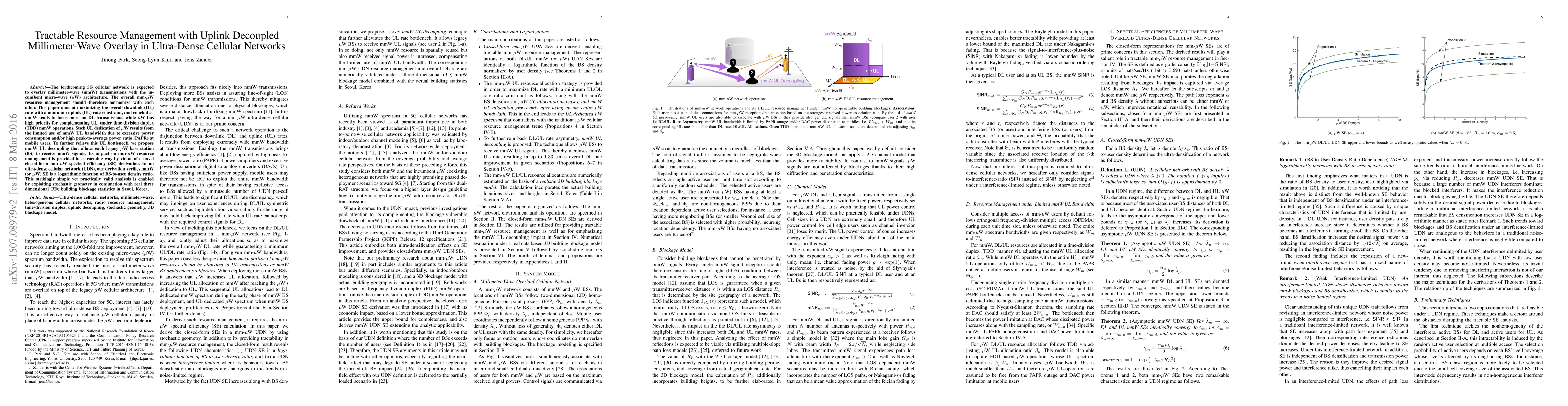 This paper proposes a method for managing resources in ultra-dense 5G networks by decoupling uplink millimeter-wave transmissions, allowing legacy micro-wave base stations to receive mmW signals. It concludes that mmW should focus on downlink transmissions while micro-wave complements uplink, providing a tractable closed-form spectral efficiency derivation validated by stochastic geometry and real 3D building blockage data.