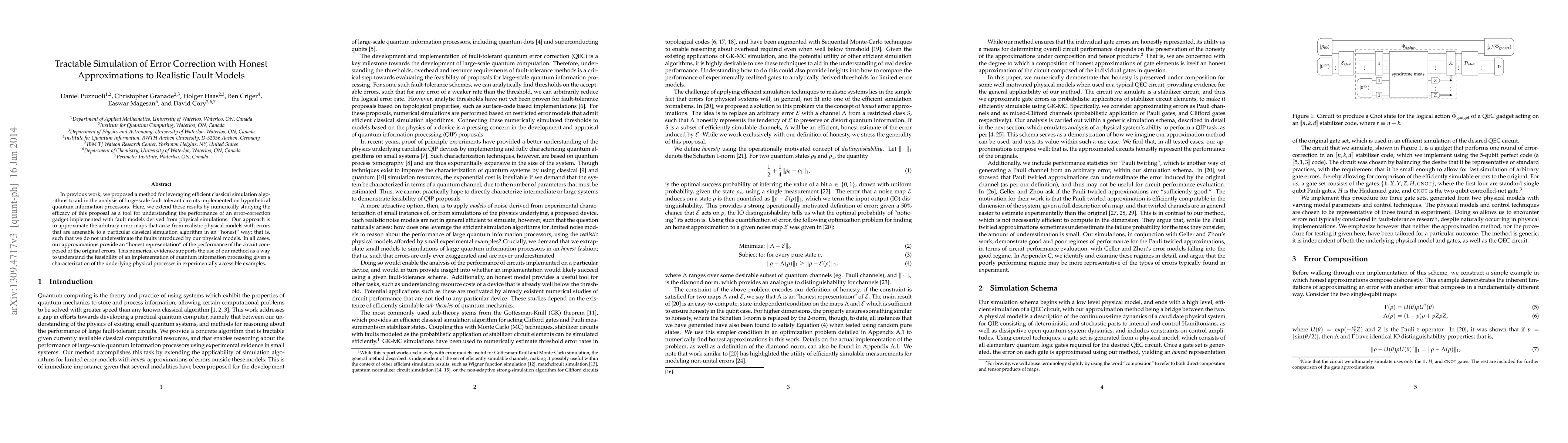 This paper proposes a method to simulate error correction in quantum circuits using efficient classical algorithms, approximating realistic fault models without underestimating the faults. The study shows that these approximations provide an honest representation of the original error performance, supporting the method's feasibility for analyzing quantum information processing implementations.