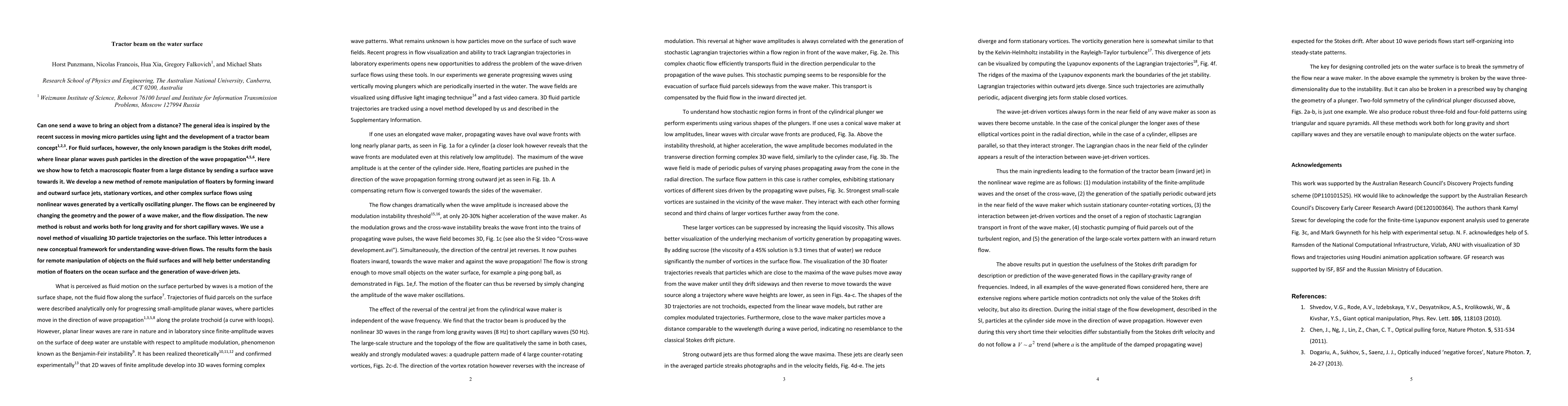 Development of a novel method for generating complex surface flows using nonlinear waves for remote manipulation of objects on fluid surfaces.