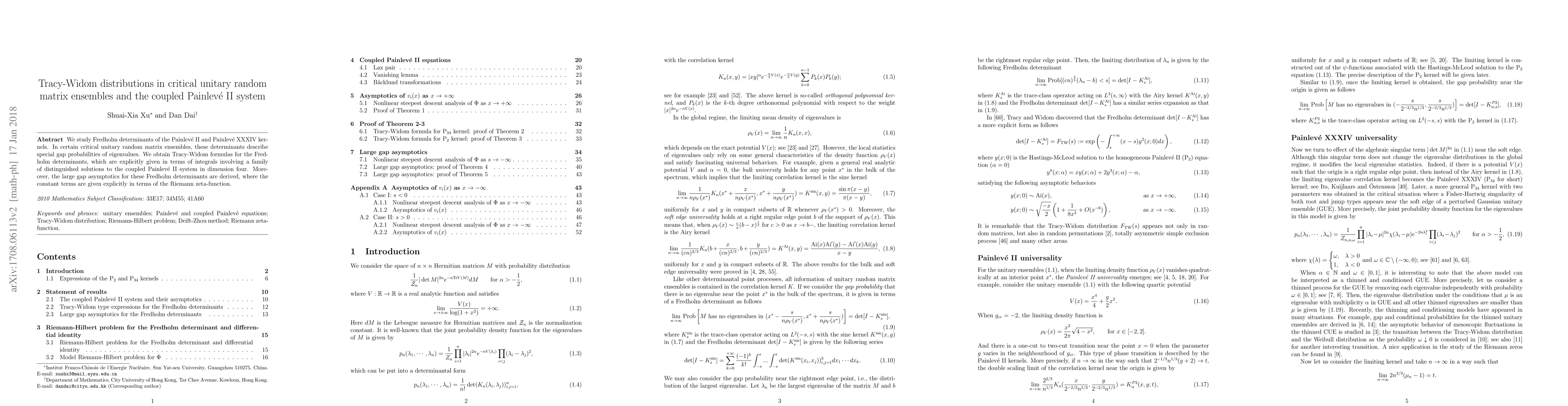 This paper investigates Fredholm determinants related to Painlevé II and XXXIV kernels in critical unitary random matrix ensembles, deriving Tracy-Widom formulas and large gap asymptotics. The results are expressed in terms of integrals involving solutions to the coupled Painlevé II system, with constant terms explicitly linked to the Riemann zeta-function.