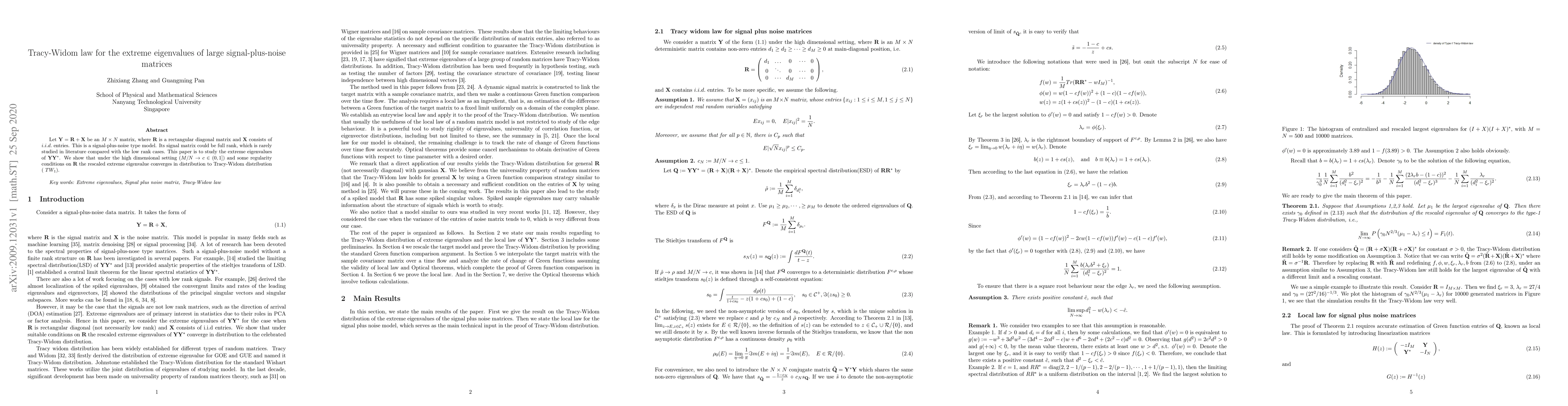 This paper investigates the extreme eigenvalues of large signal-plus-noise matrices $\bY =\bR+\bX$, where $\bR$ is a full rank rectangular diagonal matrix and $\bX$ consists of i.i.d. entries. It shows that under high-dimensional conditions, the rescaled extreme eigenvalue converges to the Tracy-Widom distribution.
