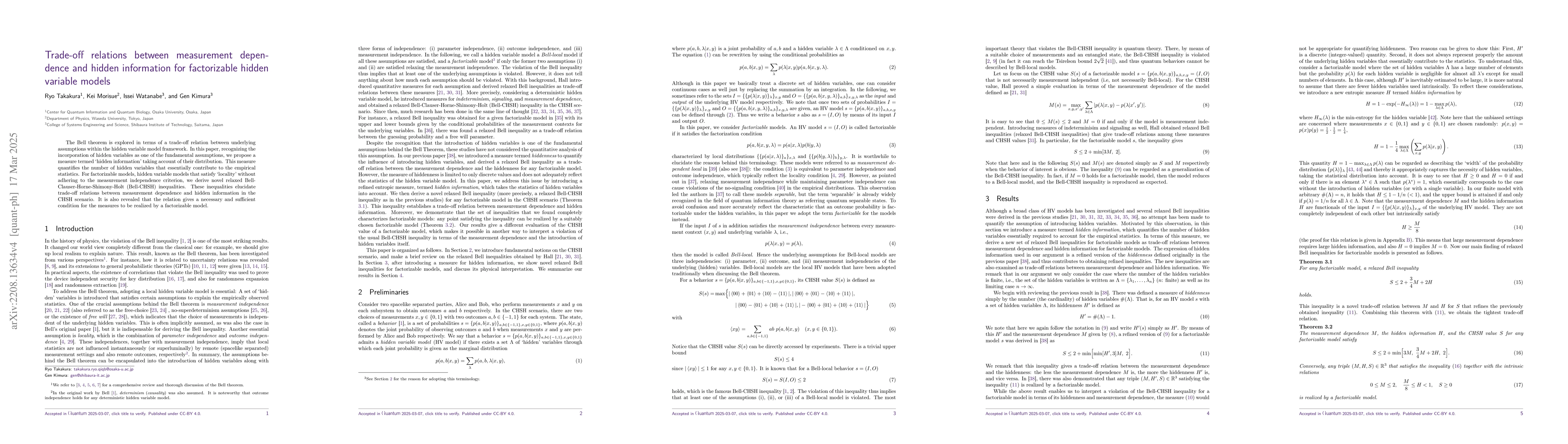 This paper investigates the Bell theorem in the context of separable hidden variable models, introducing a measure of hiddenness to quantify the necessity of hidden variables. It derives new Bell-CHSH inequalities that reveal trade-off relations between measurement dependence and hiddenness, providing a necessary and sufficient condition for these measures in separable models.