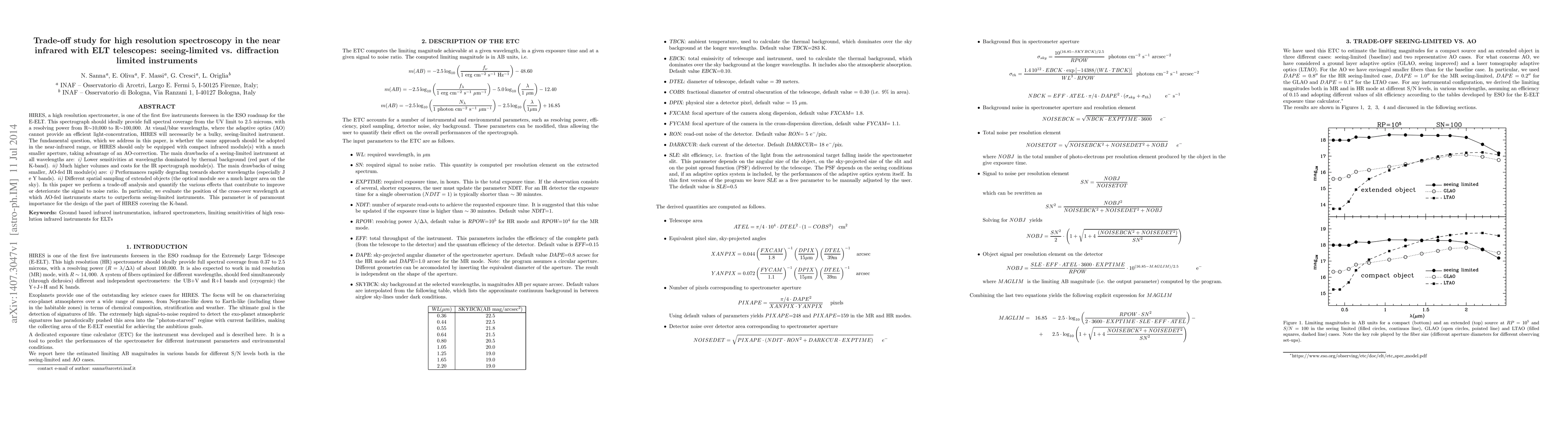 HIRES, a high resolution spectrometer, is one of the first five instruments foreseen in the ESO roadmap for the E-ELT. This spectrograph should ideally provide full spectral coverage from the UV limit to 2.5 microns, with a resolving power from R$\sim$10,000 to R$\sim$100,000. At visual/blue wavelengths, where the adaptive optics (AO) cannot provide an efficient light-concentration, HIRES will necessarily be a bulky, seeing-limited instrument. The fundamental question, which we address in this paper, is whether the same approach should be adopted in the near-infrared range, or HIRES should only be equipped with compact infrared module(s) with a much smaller aperture, taking advantage of an AO-correction. The main drawbacks of a seeing-limited instrument at all wavelengths are: \textit{i)} Lower sensitivities at wavelengths dominated by thermal background (red part of the K-band). \textit{ii)} Much higher volumes and costs for the IR spectrograph module(s). The main drawbacks of using smaller, AO-fed IR module(s) are: \textit{i)} Performances rapidly degrading towards shorter wavelengths (especially J e Y bands). \textit{ii)} Different spatial sampling of extended objects (the optical module see a much larger area on the sky). In this paper we perform a trade-off analysis and quantify the various effects that contribute to improve or deteriorate the signal to noise ratio. In particular, we evaluate the position of the cross-over wavelength at which AO-fed instruments starts to outperform seeing-limited instruments. This parameter is of paramount importance for the design of the part of HIRES covering the K-band.