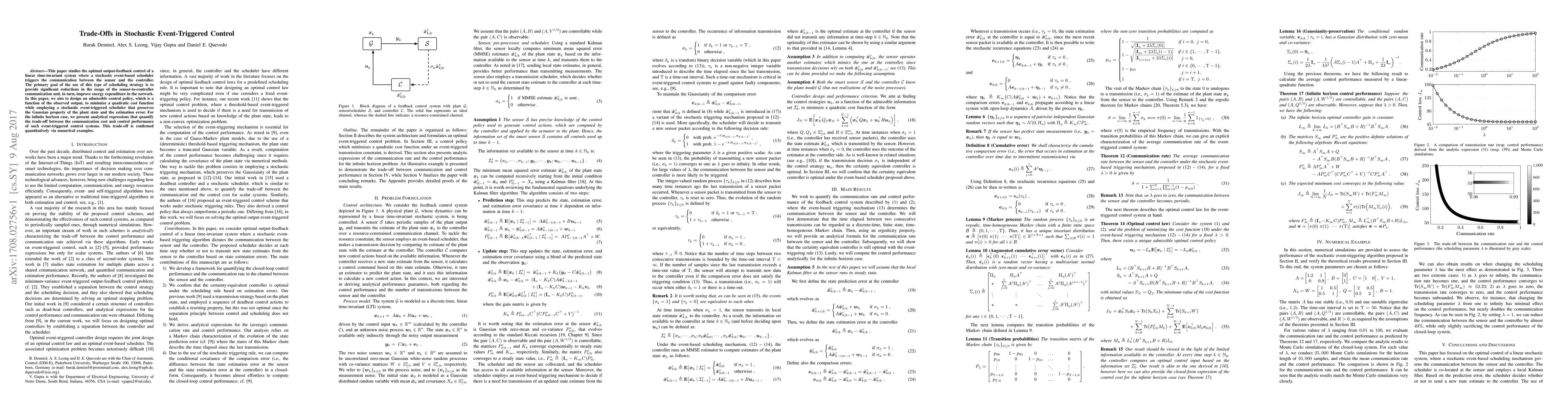 This paper develops an optimal output-feedback control policy for linear systems using a stochastic event-triggered scheduler to minimize communication and energy usage. Analytical expressions and numerical examples quantify the trade-off between communication cost and control performance in such systems.