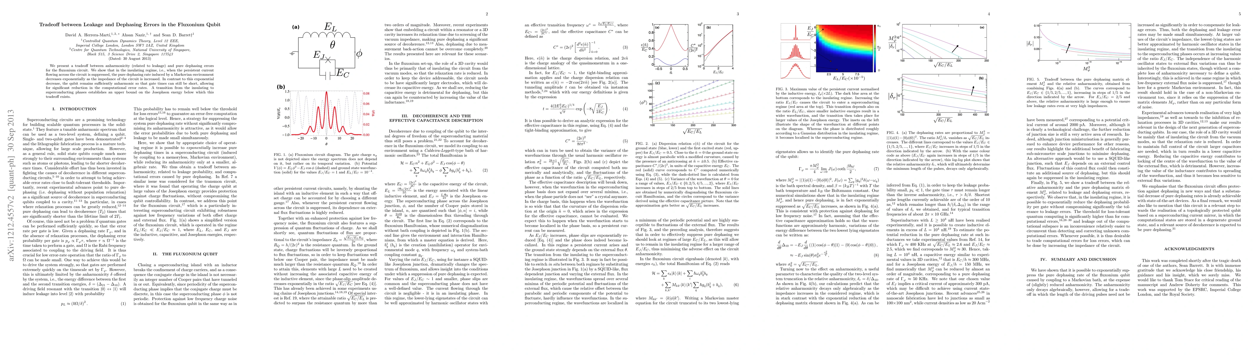 We present a tradeoff between leakage and pure dephasing errors for the fluxonium circuit. We show that in the insulating regime, i.e., when the persistent current flowing across the circuit is suppressed, the pure dephasing rate decreases exponentially as the impedance of the circuit is increased. In contrast to this exponential decrease, the qubit remains sufficiently anharmonic so that gates times can still be short, allowing for significant reduction in the computational error rates.