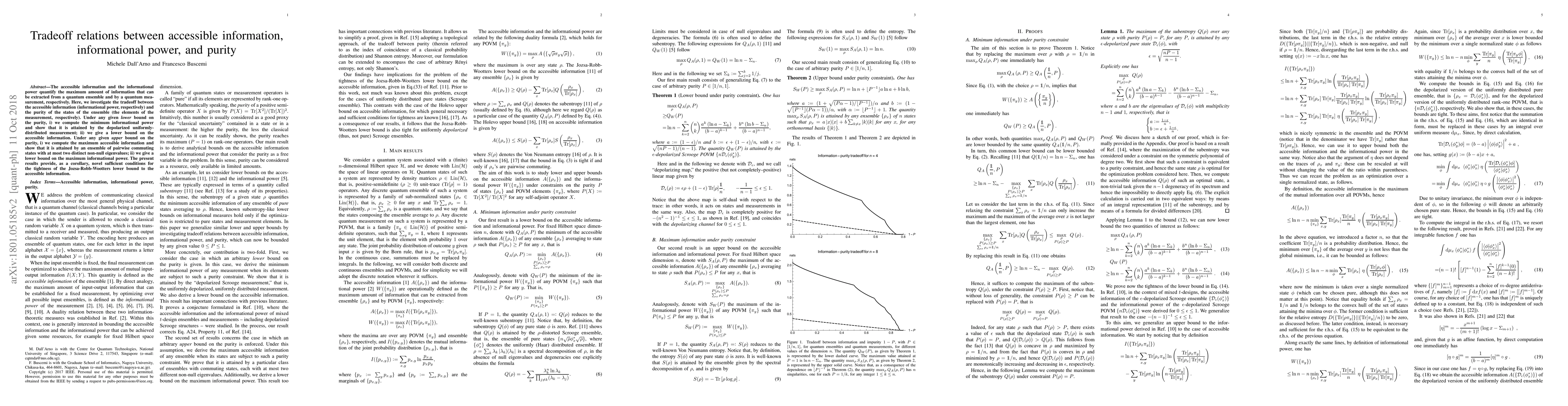 This paper investigates the tradeoff between accessible information, informational power, and the purity of quantum states. It establishes minimum and maximum bounds for informational power and accessible information under given purity constraints, revealing the optimal measurement and state configurations.