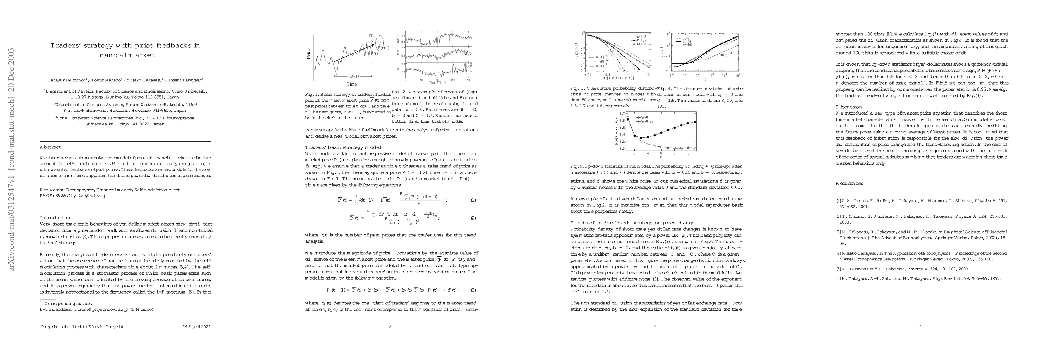 This research paper introduces a new model that explains price movements in financial markets by considering traders' self-modulation effects. It finds that traders use strategies relying on weighted feedbacks of past prices, leading to slow diffusion, apparent trends, and power-law distribution of price changes.