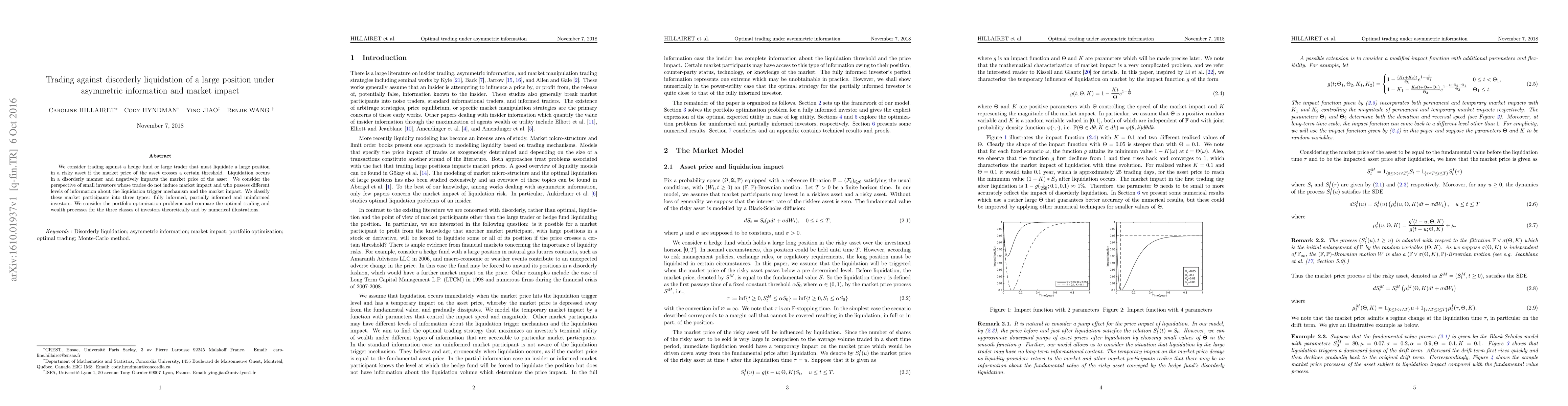 We consider trading against a hedge fund or large trader that must liquidate a large position in a risky asset if the market price of the asset crosses a certain threshold. Liquidation occurs in a disorderly manner and negatively impacts the market price of the asset. We consider the perspective of small investors whose trades do not induce market impact and who possess different levels of information about the liquidation trigger mechanism and the market impact. We classify these market participants into three types: fully informed, partially informed and uninformed investors. We consider the portfolio optimization problems and compare the optimal trading and wealth processes for the three classes of investors theoretically and by numerical illustrations.