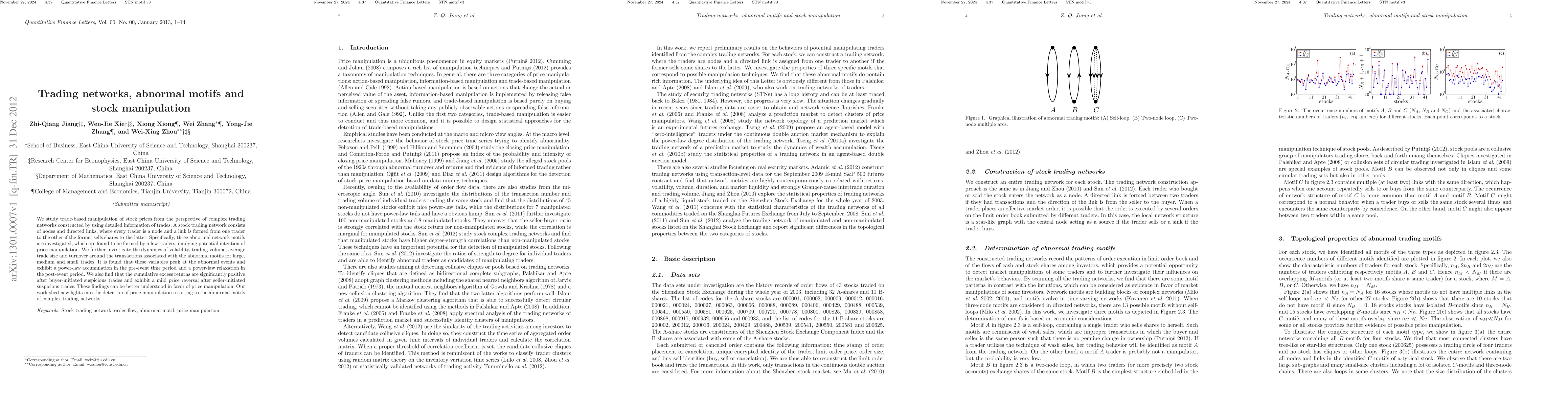 This paper investigates stock price manipulation through abnormal motifs in trading networks, revealing that certain patterns formed by a few traders suggest potential price manipulation. It finds that volatility, trading volume, and other metrics peak during abnormal events, supporting the detection of manipulative trading practices.