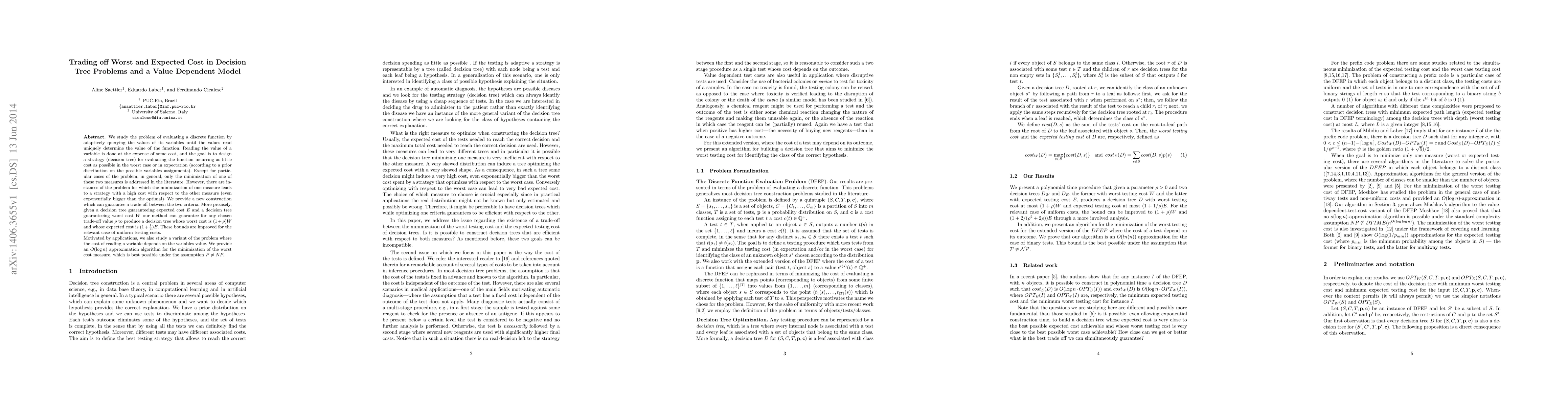 This research introduces a method to balance worst-case and expected cost in decision tree problems, providing a trade-off between the two. It offers improved bounds for uniform testing costs and an O(log n) approximation algorithm for a variant where variable cost depends on its value, which is optimal under the assumption P ≠ NP.