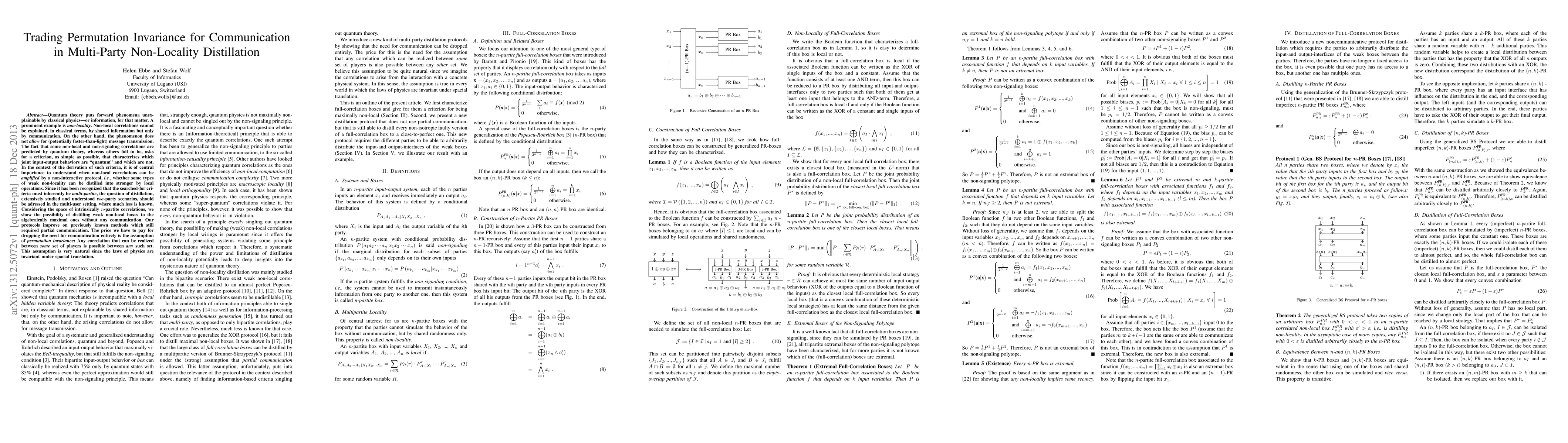 This paper explores the distillation of weak non-local correlations into stronger non-local boxes in multi-party quantum settings without requiring communication between parties. It demonstrates that permutation invariance can replace communication, simplifying the criteria for identifying "quantum" correlations.