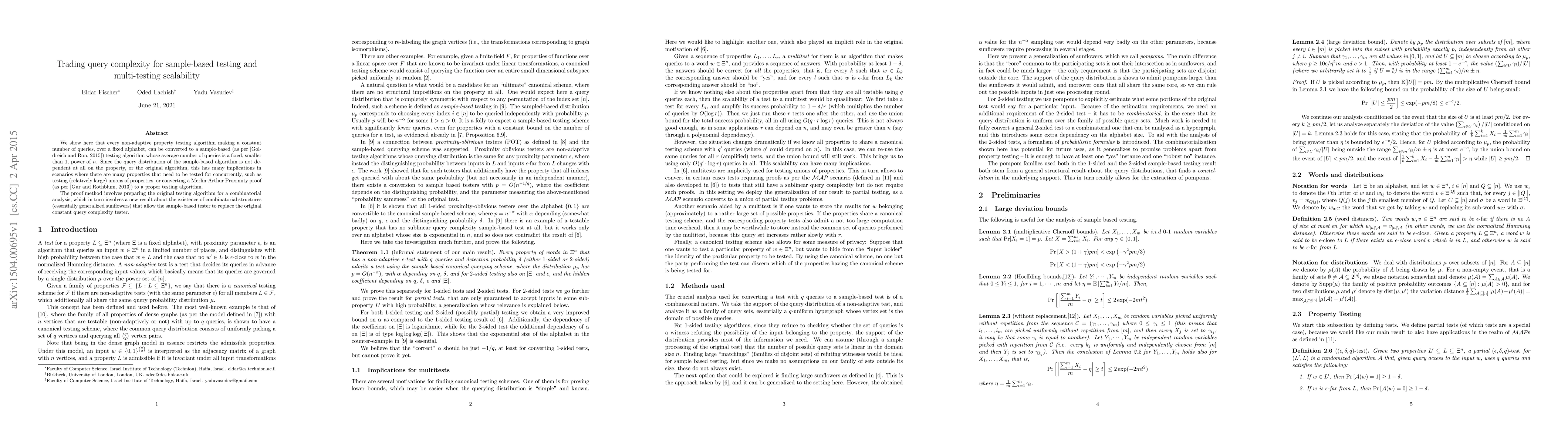 Researchers developed a way to convert property testing algorithms that make a constant number of queries into sample-based testing algorithms with a smaller average query complexity, allowing for more efficient testing of multiple properties concurrently.