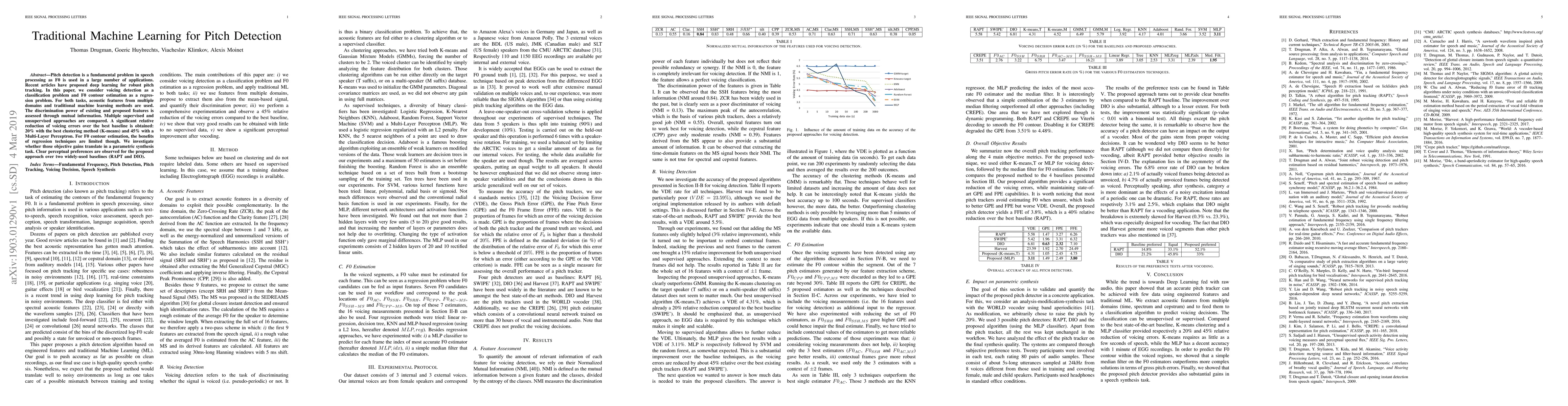 Researchers compared traditional machine learning methods with acoustic features to deep learning for pitch detection in speech processing, finding significant improvements in voicing error reduction and clear perceptual preferences for proposed approach.