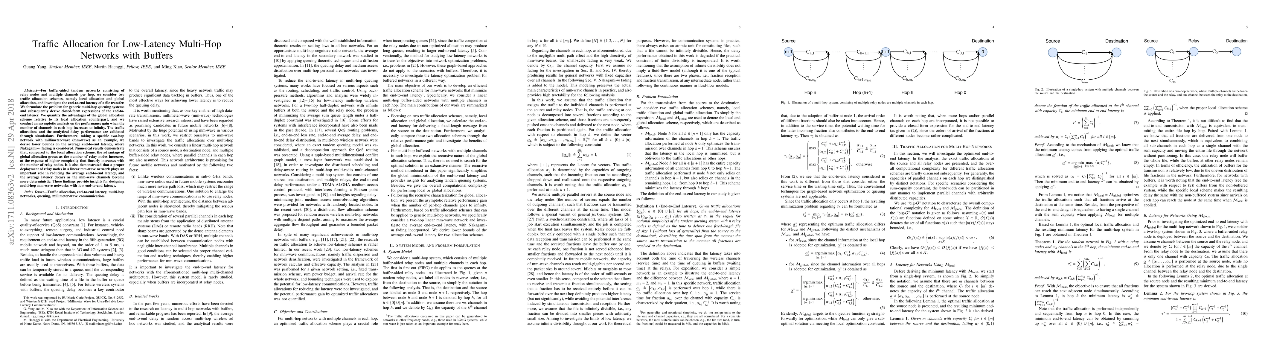 This paper investigates traffic allocation schemes for low-latency millimeter-wave multi-hop networks with buffers, comparing local and global allocation methods. It demonstrates that global allocation significantly reduces end-to-end latency compared to local allocation, especially with more relay nodes, though it comes at the cost of higher complexity.