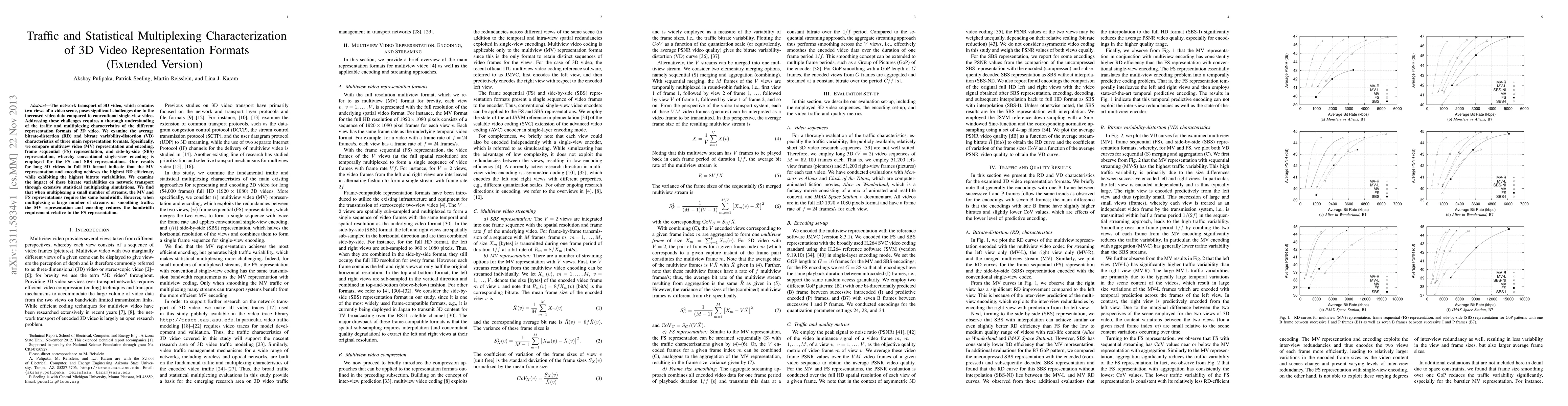 The network transport of 3D video, which contains two views of a video scene, poses significant challenges due to the increased video data compared to conventional single-view video. Addressing these challenges requires a thorough understanding of the traffic and multiplexing characteristics of the different representation formats of 3D video. We examine the average bitrate-distortion (RD) and bitrate variability-distortion (VD) characteristics of three main representation formats. Specifically, we compare multiview video (MV) representation and encoding, frame sequential (FS) representation, and side-by-side (SBS) representation, whereby conventional single-view encoding is employed for the FS and SBS representations. Our results for long 3D videos in full HD format indicate that the MV representation and encoding achieves the highest RD efficiency, while exhibiting the highest bitrate variabilities. We examine the impact of these bitrate variabilities on network transport through extensive statistical multiplexing simulations. We find that when multiplexing a small number of streams, the MV and FS representations require the same bandwidth. However, when multiplexing a large number of streams or smoothing traffic, the MV representation and encoding reduces the bandwidth requirement relative to the FS representation.