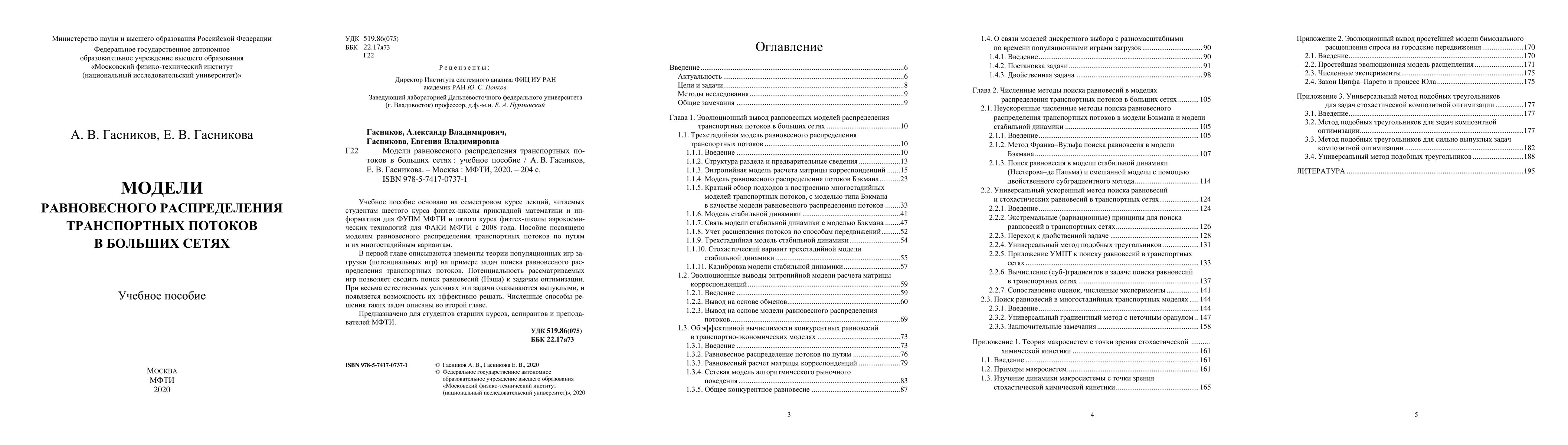 In this book we describe BMW traffic assignment model and Nesterov-dePalma model. We consider Entropy model for demand matrix. Based on this models we build multi-stage traffic assignment models. The equilibrium in such models can be found from convex-concave saddle-point problem. We show how to solve this problem by using special combination of universal gradient method and Sinkhorn's algorithm.