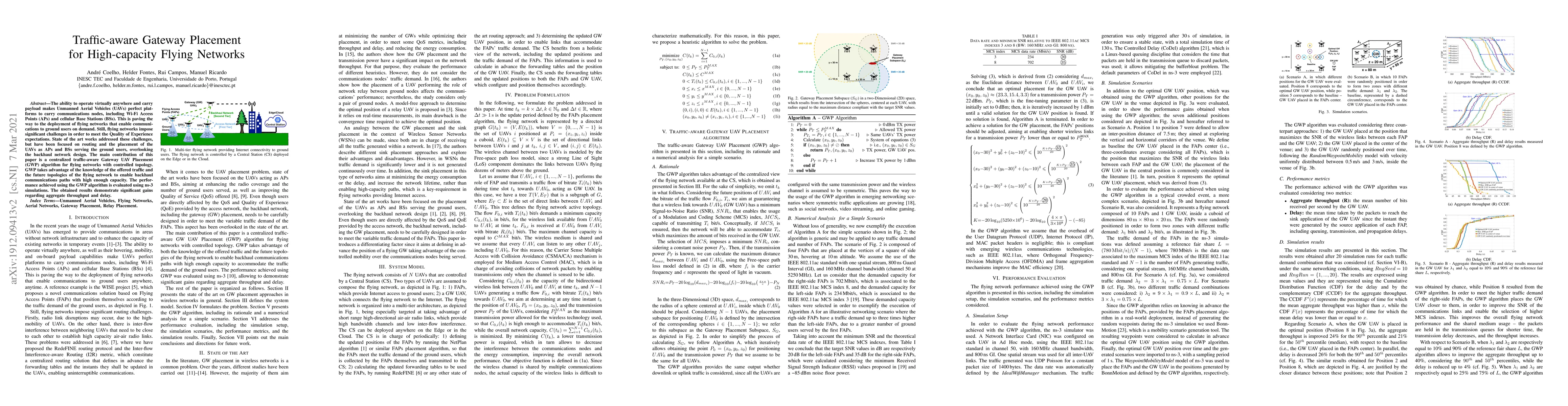 This paper presents a centralized traffic-aware Gateway UAV Placement (GWP) algorithm for high-capacity flying networks, addressing backhaul network design challenges. Simulation results show significant improvements in aggregate throughput and delay compared to existing routing-focused approaches.