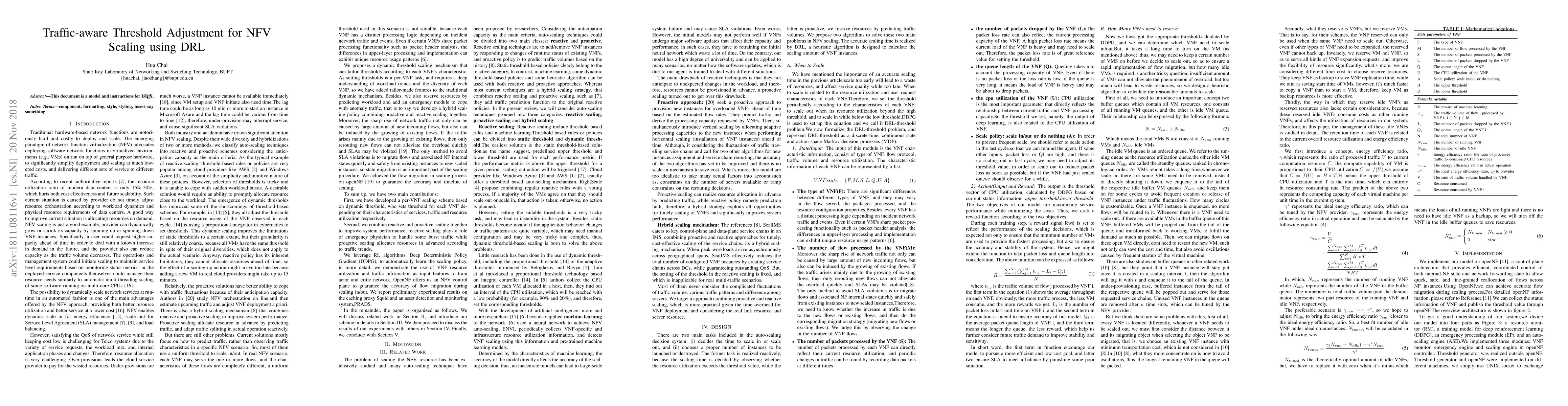 This paper proposes a dynamic threshold adjustment mechanism for scaling in Network Function Virtualization (NFV) environments using Deep Deterministic Policy Gradient (DDPG). It aims to tailor scaling thresholds for each Virtual Network Function (VNF) based on its unique traffic characteristics and resource usage patterns, incorporating proactive and reactive scaling strategies to handle both new and growing traffic flows effectively.