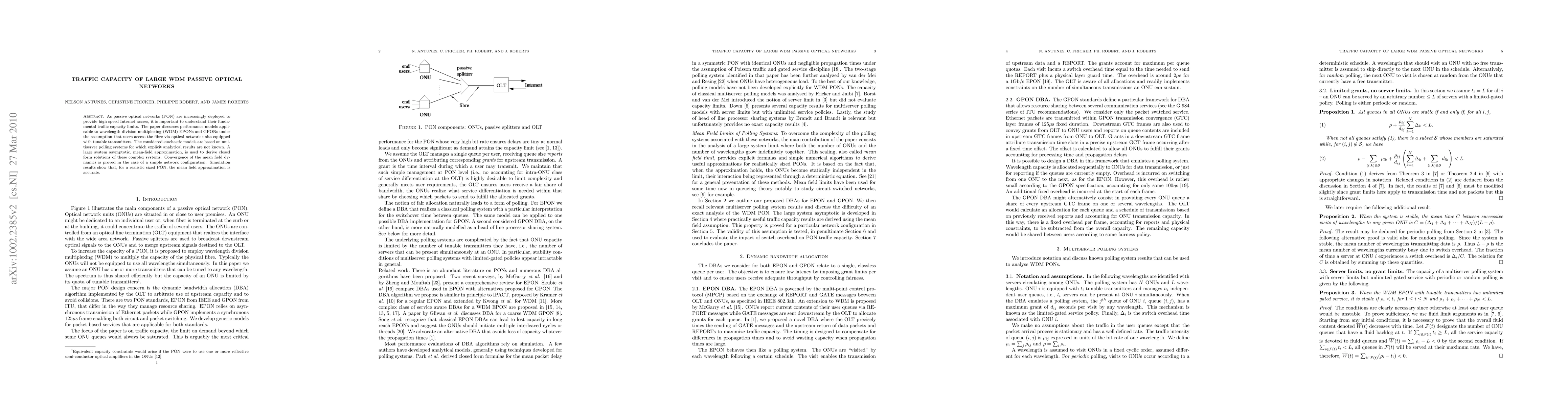 This paper develops performance models for large wavelength division multiplexing (WDM) passive optical networks (PON) to determine their traffic capacity limits. It employs a large system asymptotic mean-field approximation to derive closed-form solutions for complex stochastic multiserver polling systems, proving convergence for simple network configurations and demonstrating the accuracy of the approximation through simulations.