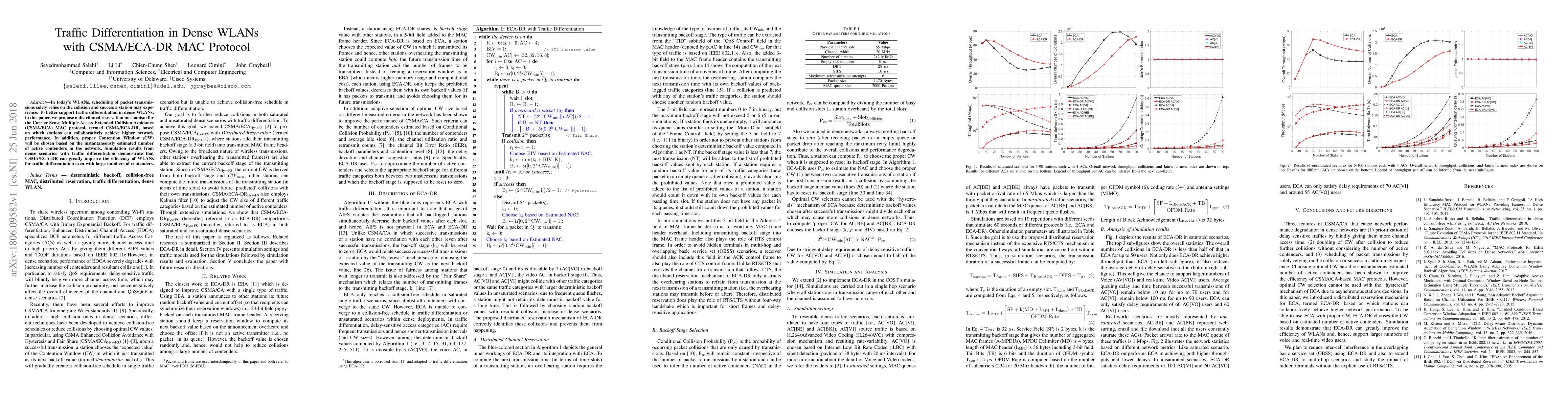 This paper proposes a distributed reservation mechanism, CSMA/ECA-DR, for the CSMA/ECA MAC protocol to enhance traffic differentiation in dense WLANs. The mechanism improves network performance by collaboratively scheduling transmissions and dynamically adjusting the Contention Window based on active contenders.