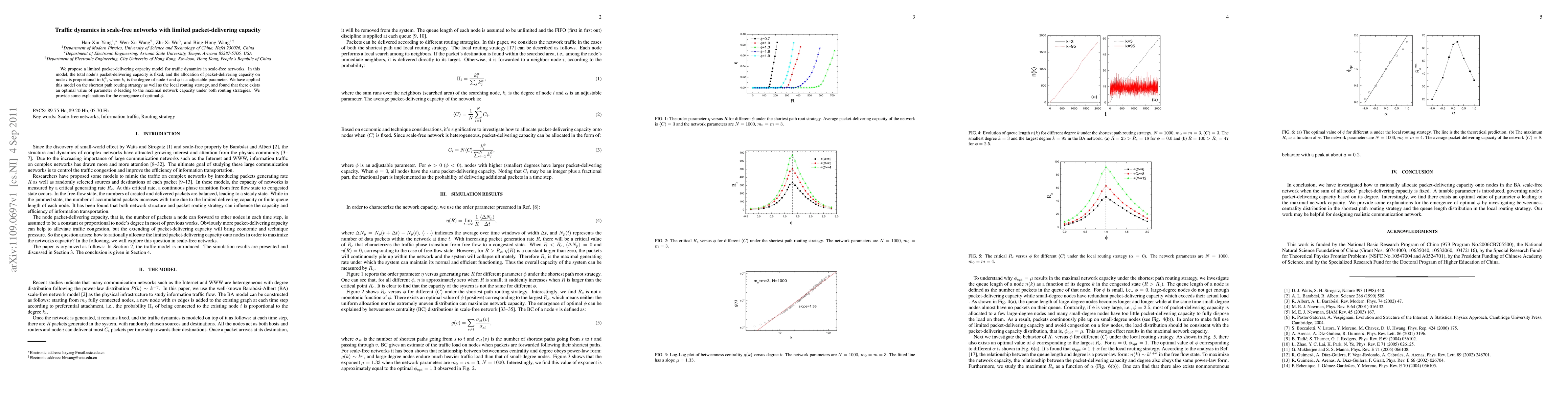 This paper introduces a model for traffic dynamics in scale-free networks with a fixed total packet-delivering capacity, showing that there exists an optimal parameter $\phi$ for both shortest path and local routing strategies that maximizes network capacity. This optimal $\phi$ is explained through the model's allocation of capacity based on node degree.