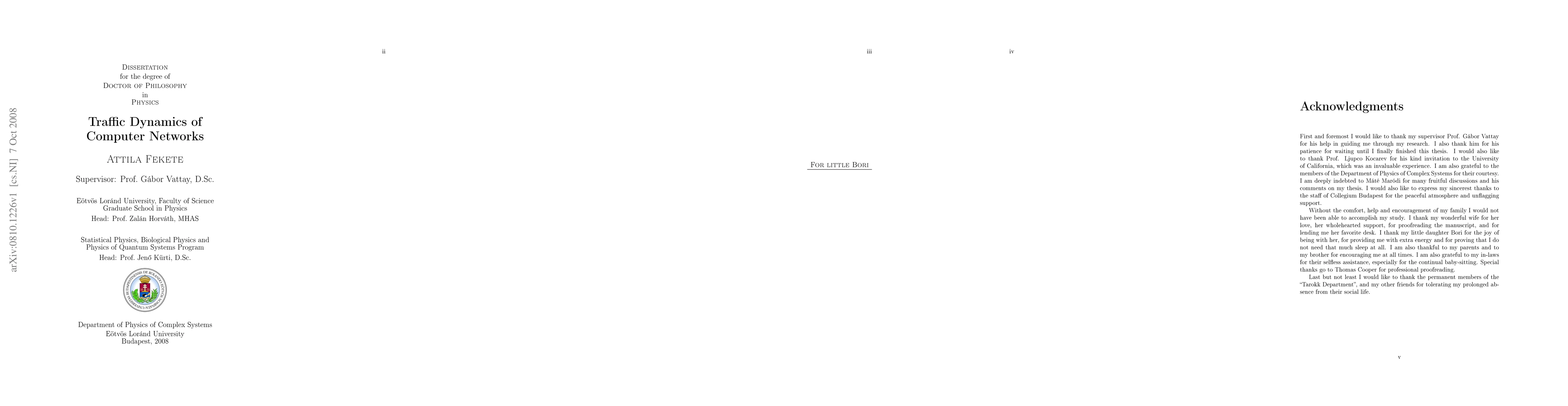 Two important aspects of the Internet, namely the properties of its topology and the characteristics of its data traffic, have attracted growing attention of the physics community. My thesis has considered problems of both aspects. First I studied the stochastic behavior of TCP, the primary algorithm governing traffic in the current Internet, in an elementary network scenario consisting of a standalone infinite-sized buffer and an access link. The effect of the fast recovery and fast retransmission (FR/FR) algorithms is also considered. I showed that my model can be extended further to involve the effect of link propagation delay, characteristic of WAN. I continued my thesis with the investigation of finite-sized semi-bottleneck buffers, where packets can be dropped not only at the link, but also at the buffer. I demonstrated that the behavior of the system depends only on a certain combination of the parameters. Moreover, an analytic formula was derived that gives the ratio of packet loss rate at the buffer to the total packet loss rate. This formula makes it possible to treat buffer-losses as if they were link-losses. Finally, I studied computer networks from a structural perspective. I demonstrated through fluid simulations that the distribution of resources, specifically the link bandwidth, has a serious impact on the global performance of the network. Then I analyzed the distribution of edge betweenness in a growing scale-free tree under the condition that a local property, the in-degree of the "younger" node of an arbitrary edge, is known in order to find an optimum distribution of link capacity. The derived formula is exact even for finite-sized networks. I also calculated the conditional expectation of edge betweenness, rescaled for infinite networks.