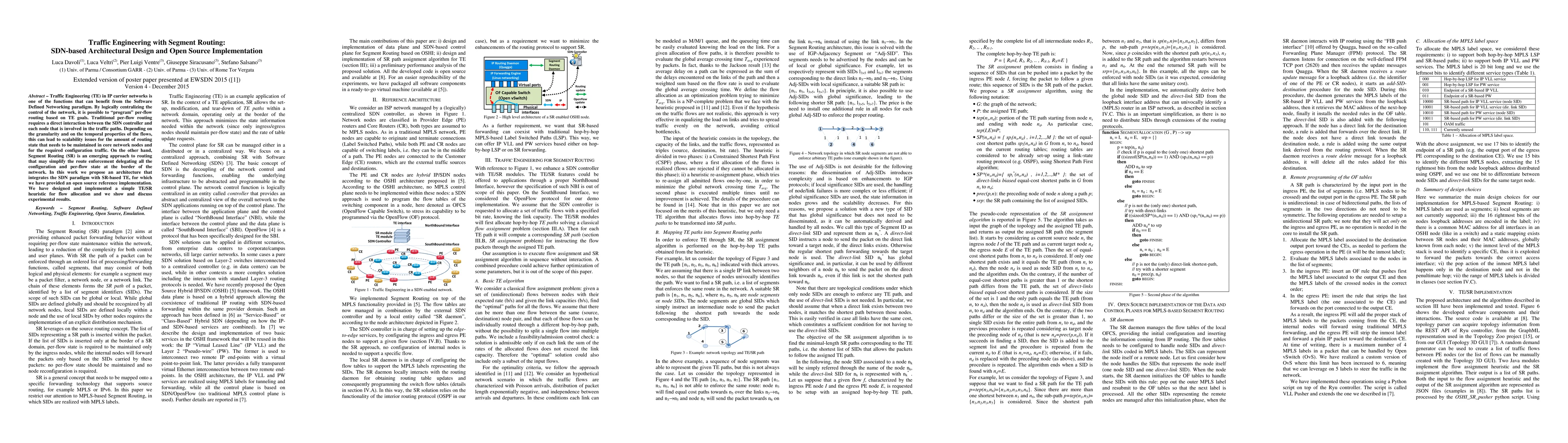 This paper proposes an SDN-based architectural design integrating Traffic Engineering with Segment Routing (SR) to address scalability issues in per-flow routing. An open source implementation is provided, demonstrating a simple TE/SR heuristic for flow allocation and presenting experimental results.