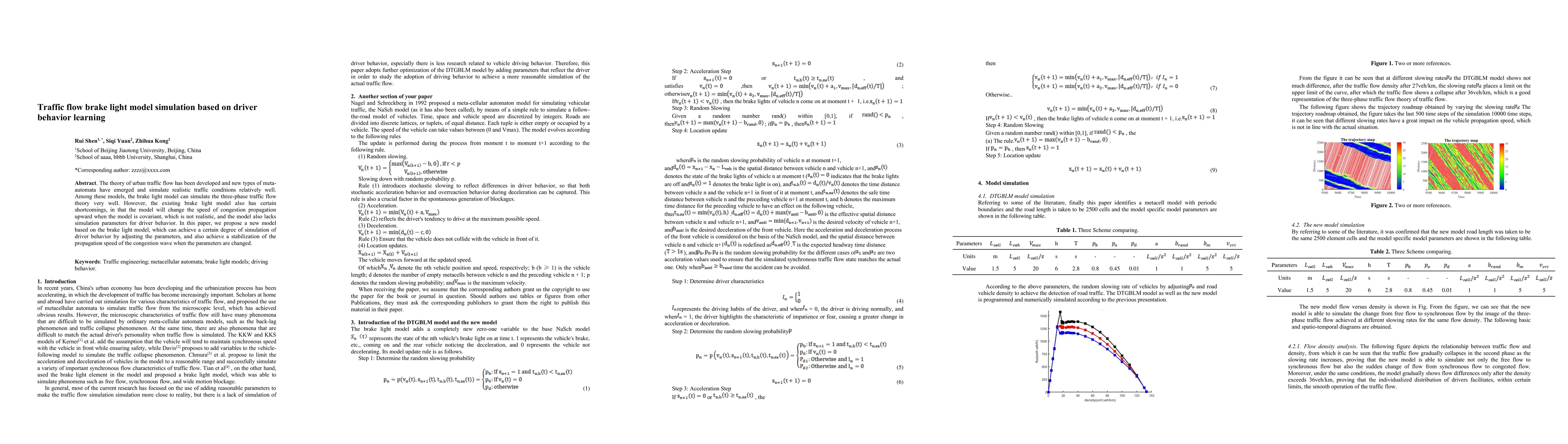 This paper proposes an enhanced traffic flow brake light model that incorporates driver behavior learning to better simulate realistic urban traffic conditions. The new model stabilizes congestion wave propagation and adjusts parameters to reflect driver behavior more accurately.