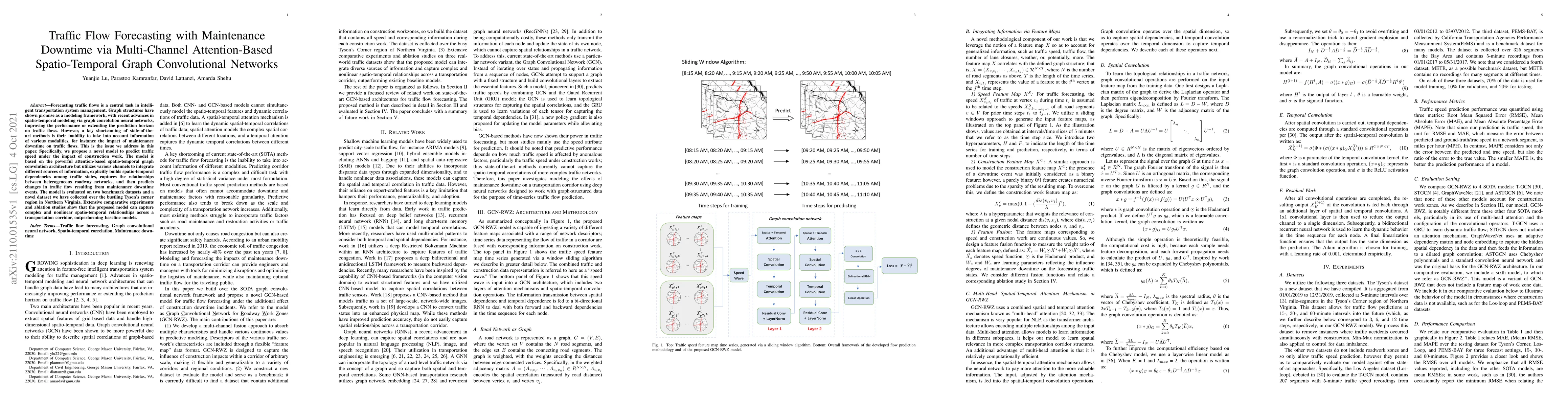 This paper proposes a multi-channel attention-based spatio-temporal graph convolutional network to forecast traffic flows, considering the impact of maintenance downtime. The model outperforms baselines by integrating various data sources and capturing complex spatio-temporal dependencies.