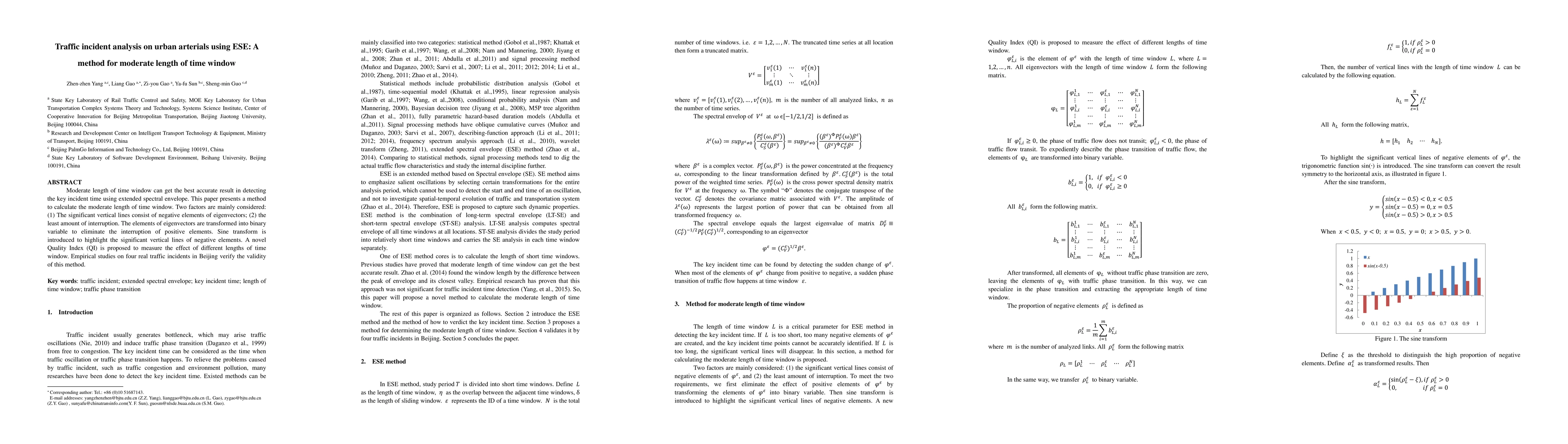 This paper proposes a method for analyzing traffic incidents on urban arterials using an extended spectral envelope (ESE) within a moderate length time window, which optimizes incident detection accuracy. The method considers significant vertical lines of negative eigenvector elements and minimizes interruptions, validated through empirical studies on four real traffic incidents in Beijing.